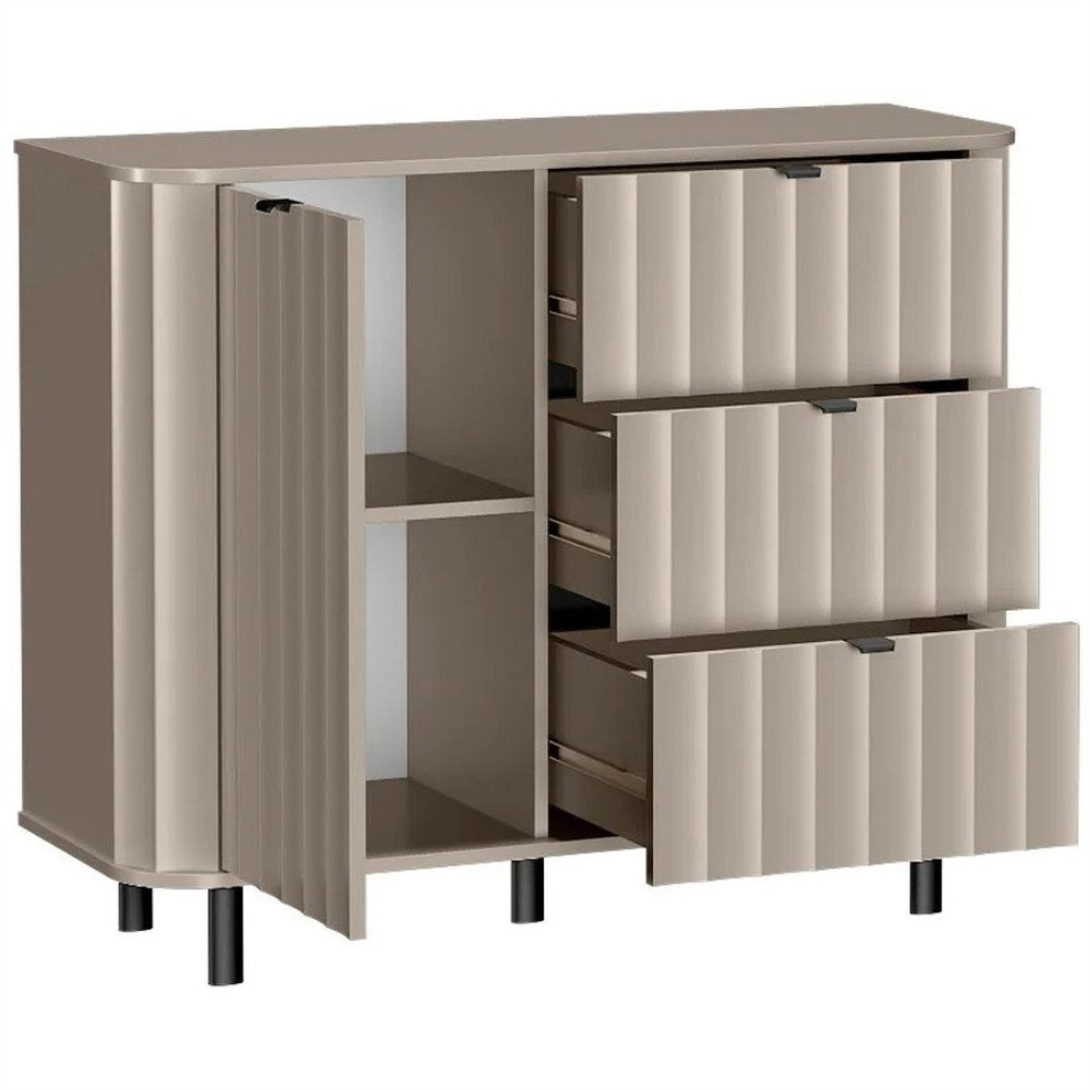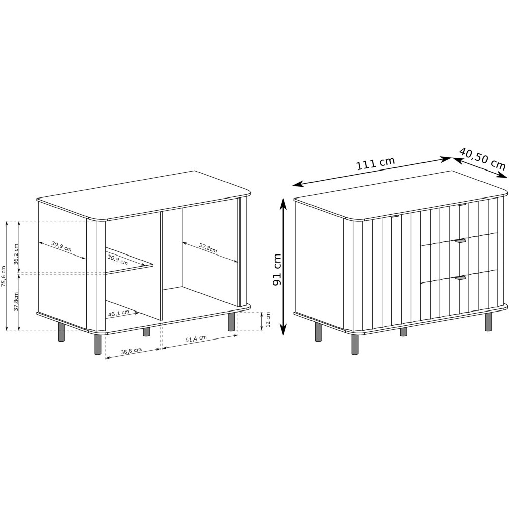 Moderní design: Přední desky z MDF s vertikálním frézováním vytvářejí elegantní Vzhled, který harmonicky zapadá do moderního bydlení. Černé kovové nožičky (12 cm) zaručují stabilitu, usnadňují čištění podlahy a jsou ideální pro domácnosti s robotickými vysavači. Malá komoda NEVADA je dokonalým důkazem toho, že stylový design a funkčnost lze perfektně spojit i v malých prostorách. Skutečný univerzální pomocník do každé domácnosti.