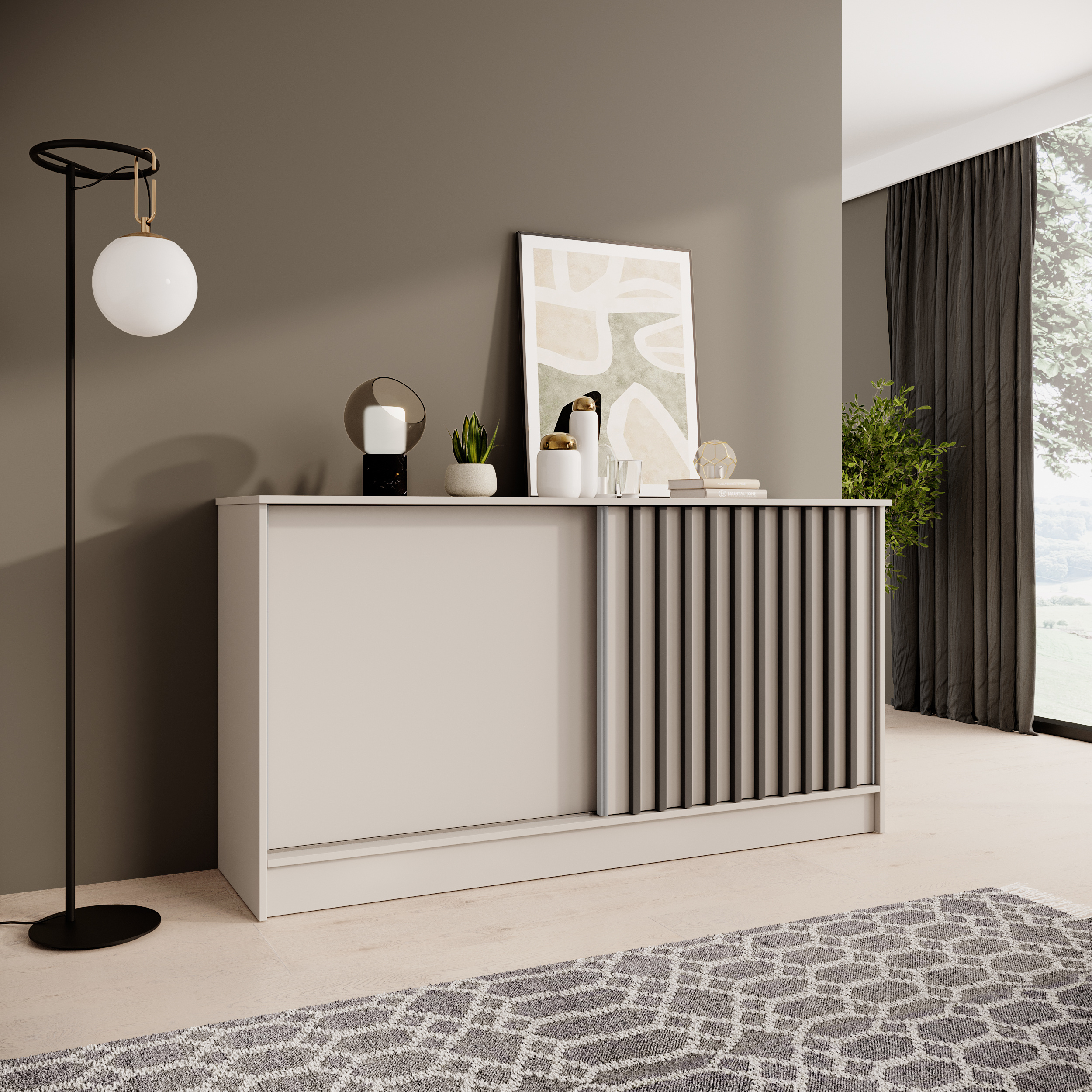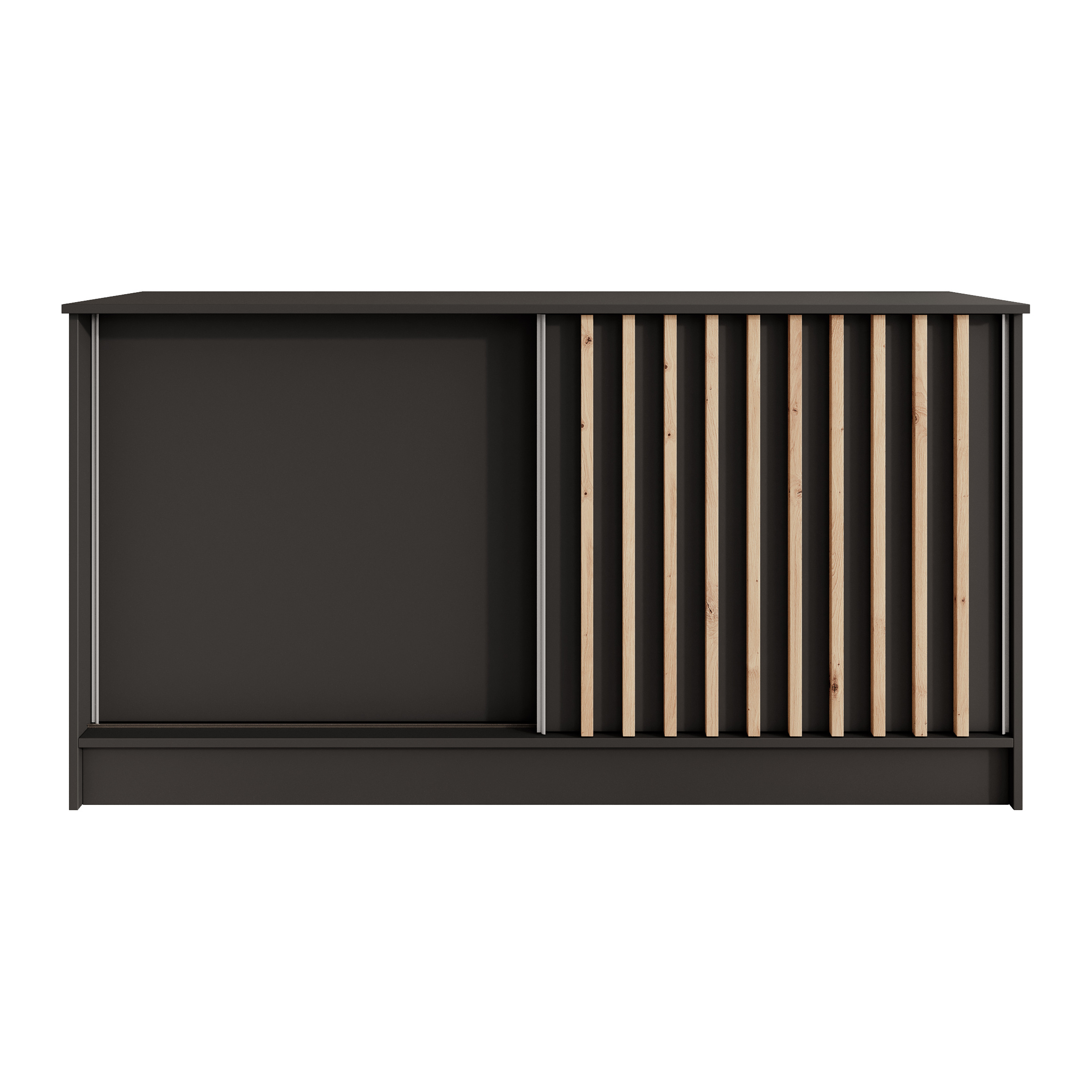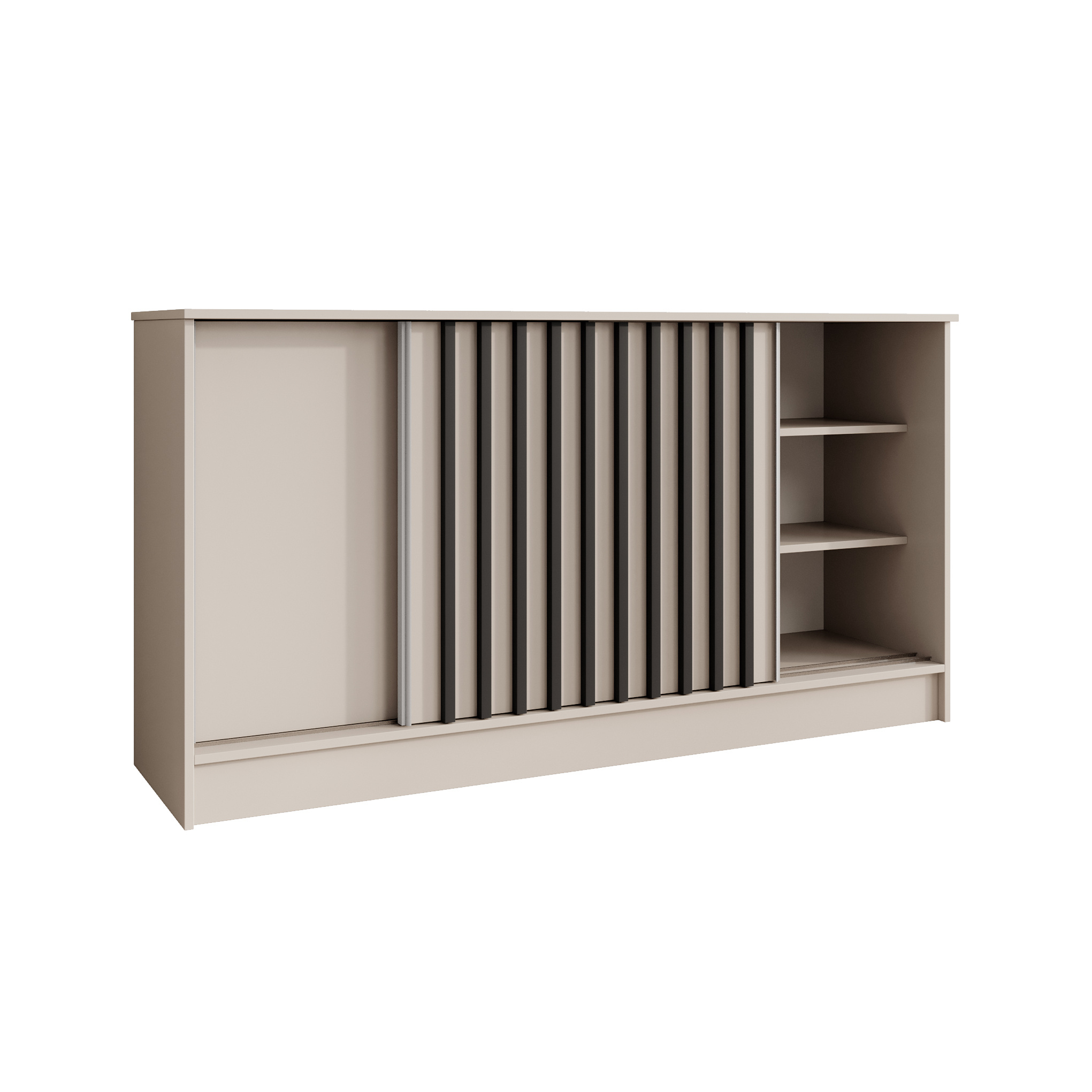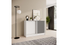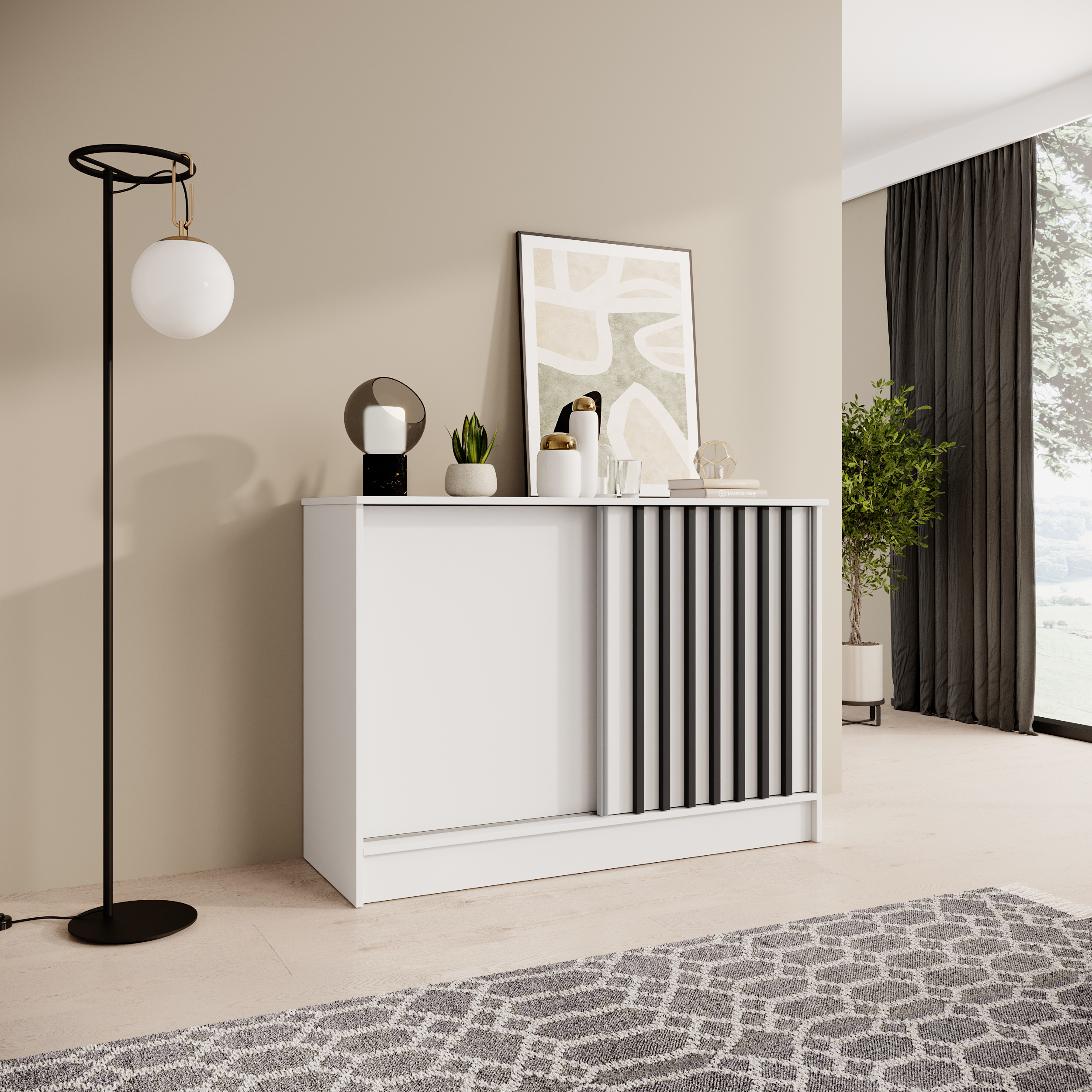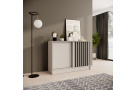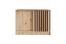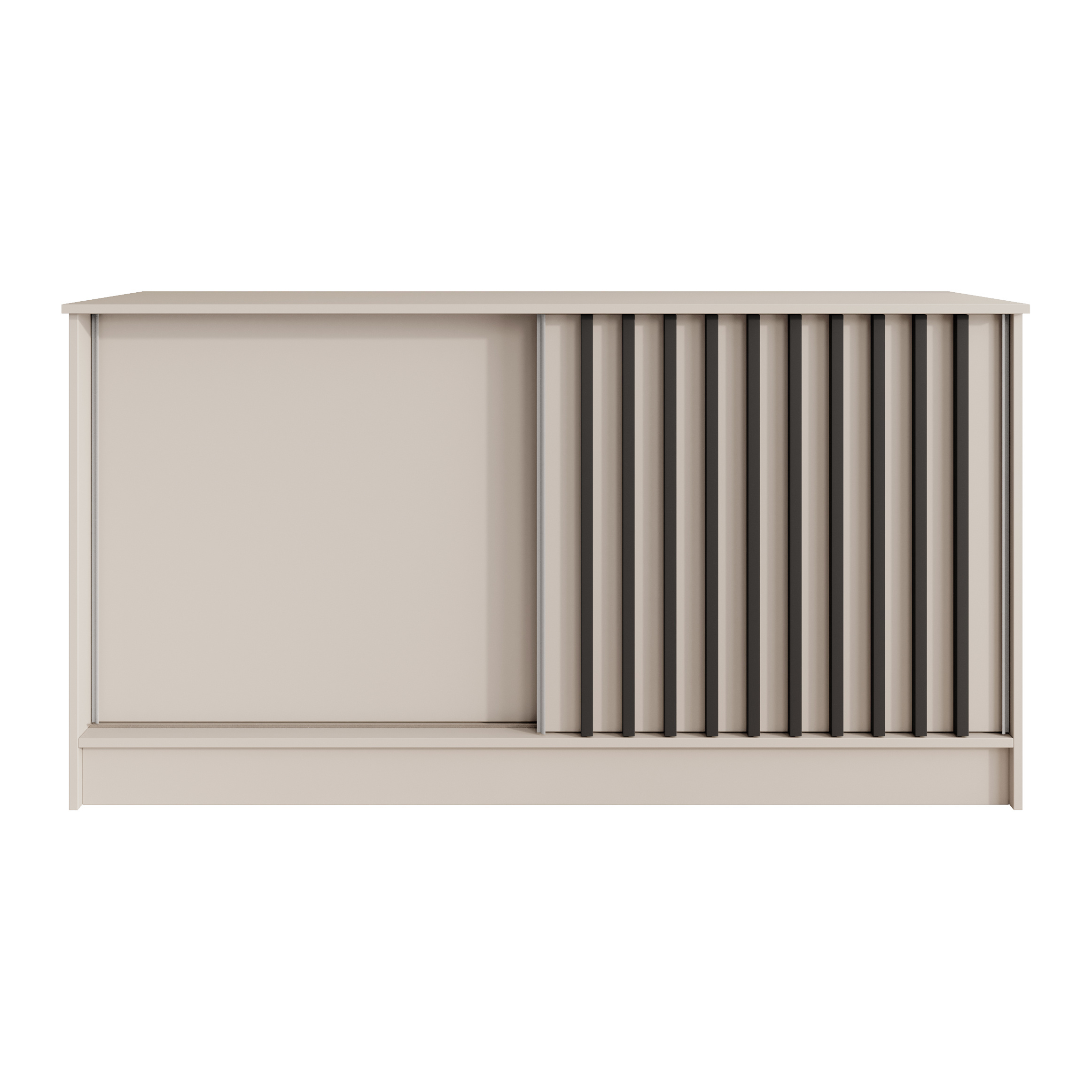 Komoda HORIZON kombinuje moderní design, funkčnost a nadčasovou eleganci. Díky dekorativním lamelovým čelům a čistým liniím se stane stylovým poutavým prvkem v každé místnosti – ať už v obývacím pokoji, ložnici nebo chodbě. Díky dvěma posuvným dvířkům nabízí komoda dostatek úložného prostoru, aniž by vyžadovala další prostor k otevírání dvířek – ideální i pro menší místnosti. Dobře navržené uspořádání umožňuje úhledné a organizované uložení oblečení, nádobí, dokumentů nebo dekorací. Komoda je k dispozici v několika moderních barevných variantách: Artisan Oak, Black, White nebo Cashmere – ideální pro harmonické začlenění do různých interiérových designových konceptů. Její elegantní vzhled lze skvěle kombinovat s nábytkem ze série