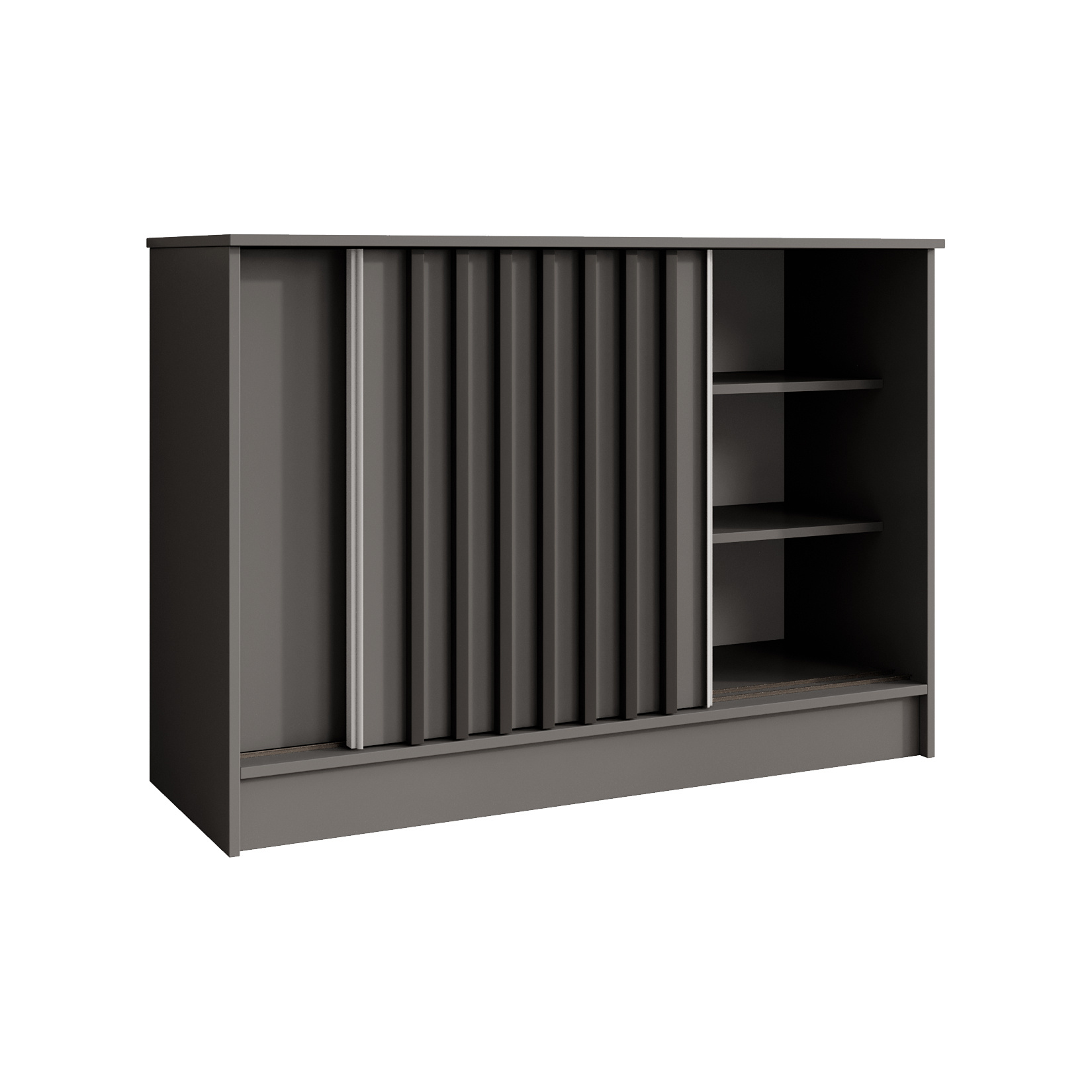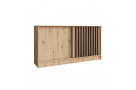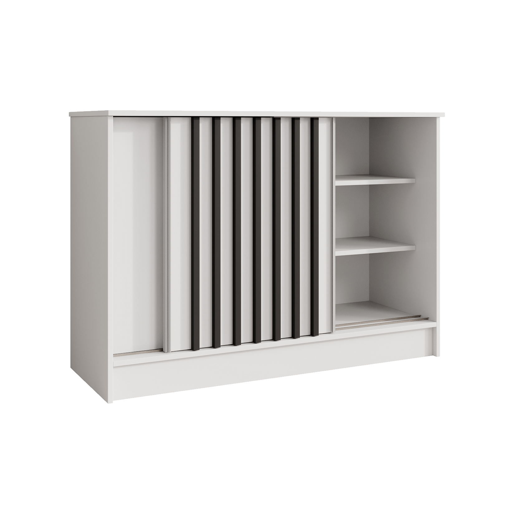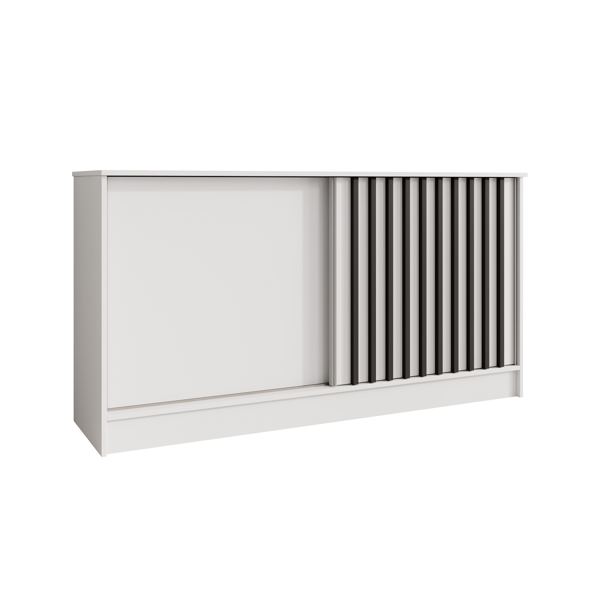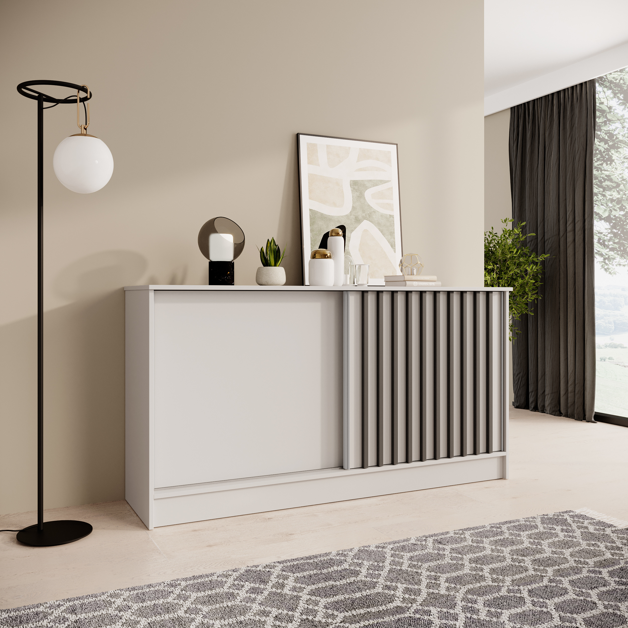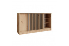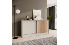 Komoda HORIZON kombinuje moderní design, funkčnost a nadčasovou eleganci. Díky dekorativním lamelovým čelům a čistým liniím se stane stylovým poutavým prvkem v každé místnosti – ať už v obývacím pokoji, ložnici nebo chodbě. Díky dvěma posuvným dvířkům nabízí komoda dostatek úložného prostoru, aniž by vyžadovala další prostor k otevírání dvířek – ideální i pro menší místnosti. Dobře navržené uspořádání umožňuje úhledné a organizované uložení oblečení, nádobí, dokumentů nebo dekorací. Komoda je k dispozici v několika moderních barevných variantách: Artisan Oak, Black, White nebo Cashmere – ideální pro harmonické začlenění do různých interiérových designových konceptů. Její elegantní vzhled lze skvěle kombinovat s nábytkem ze série