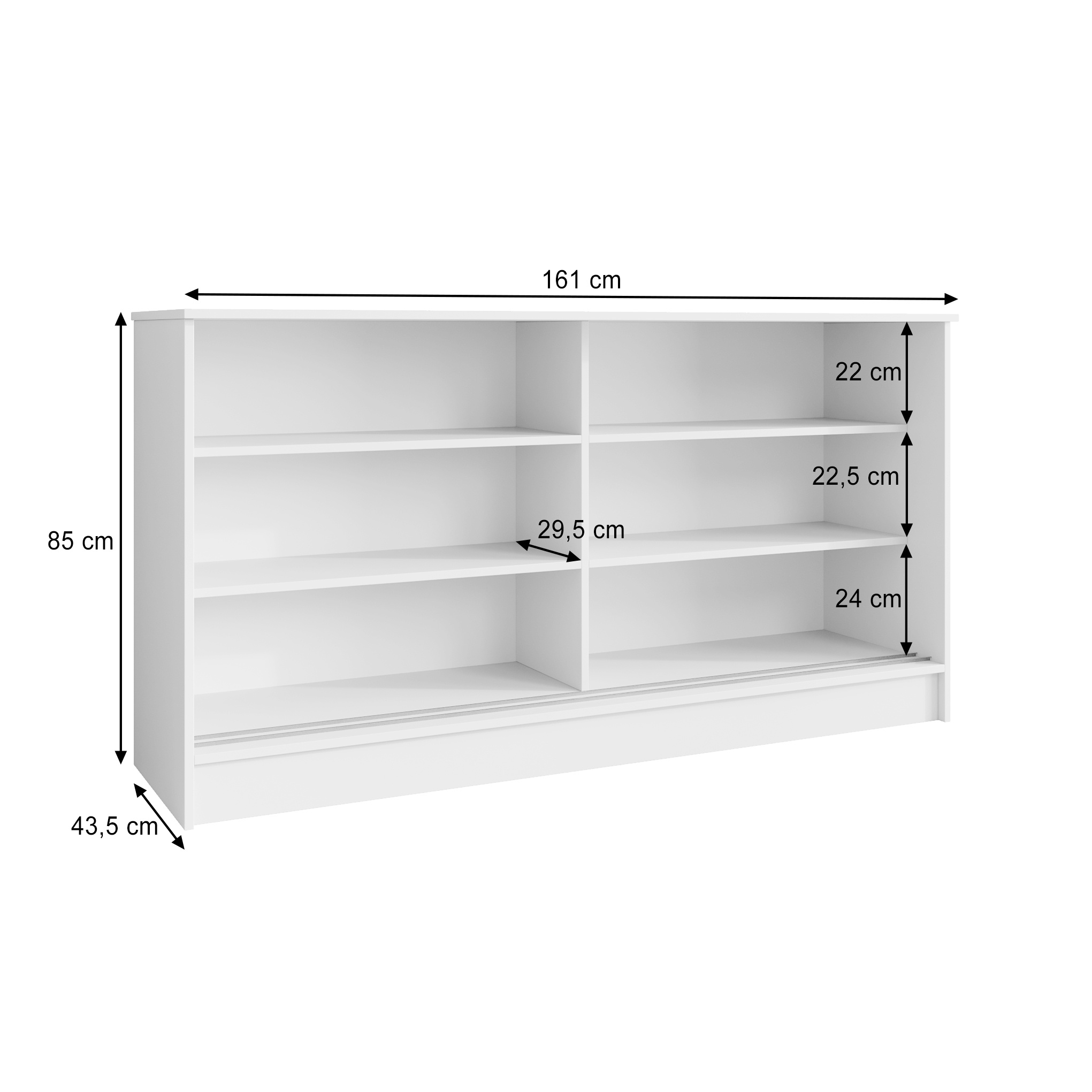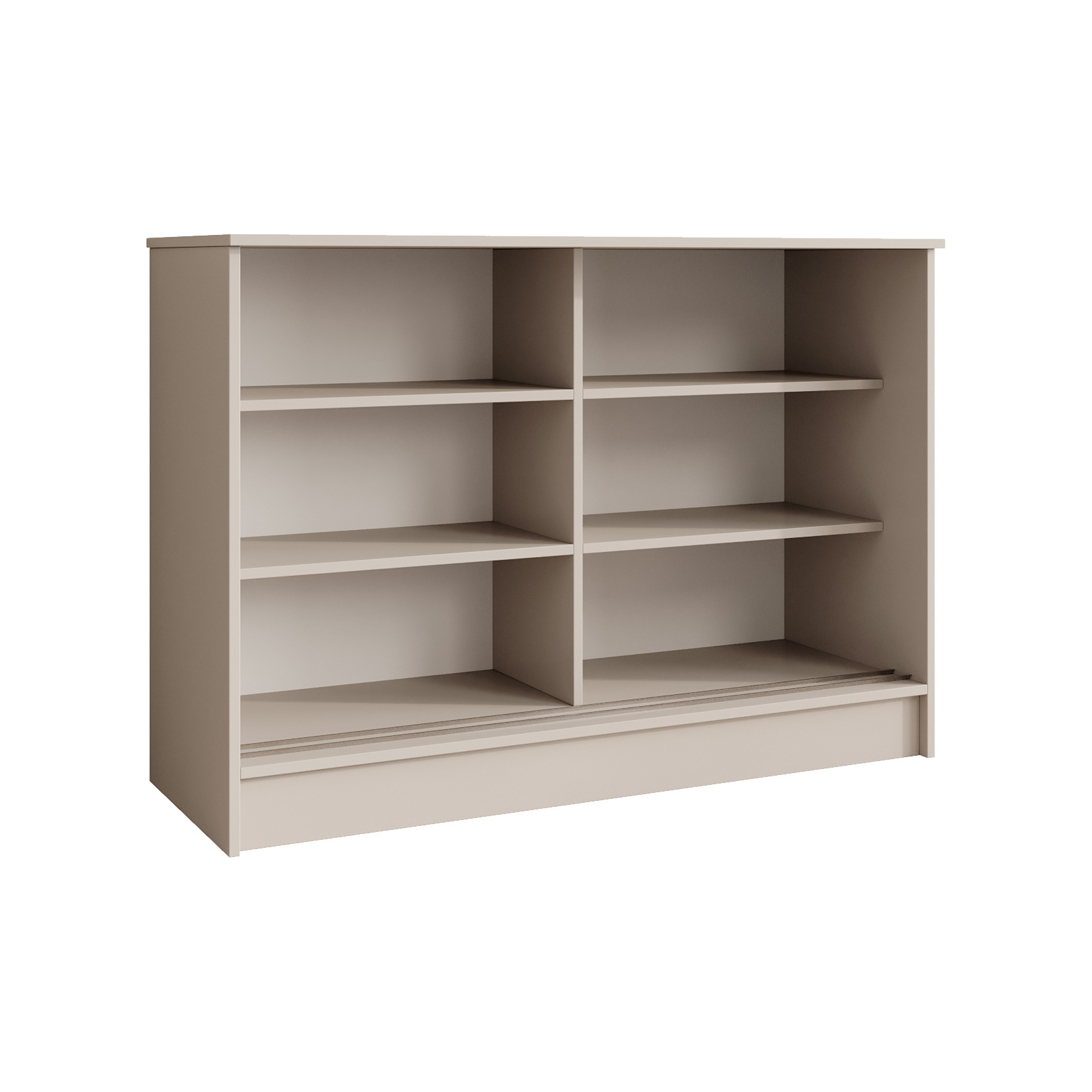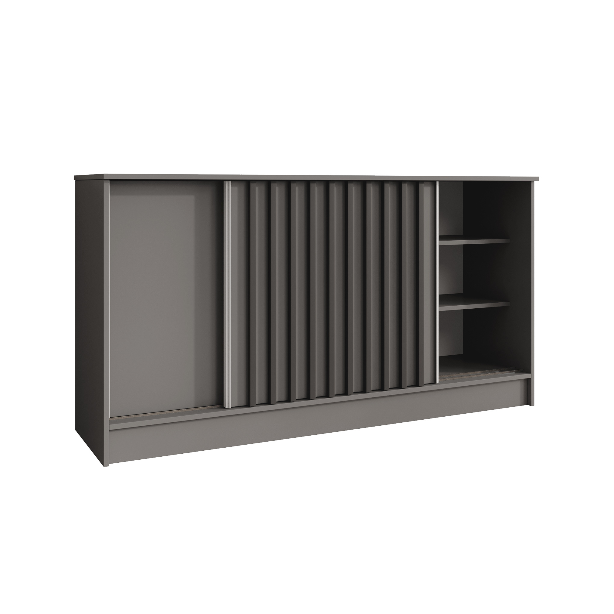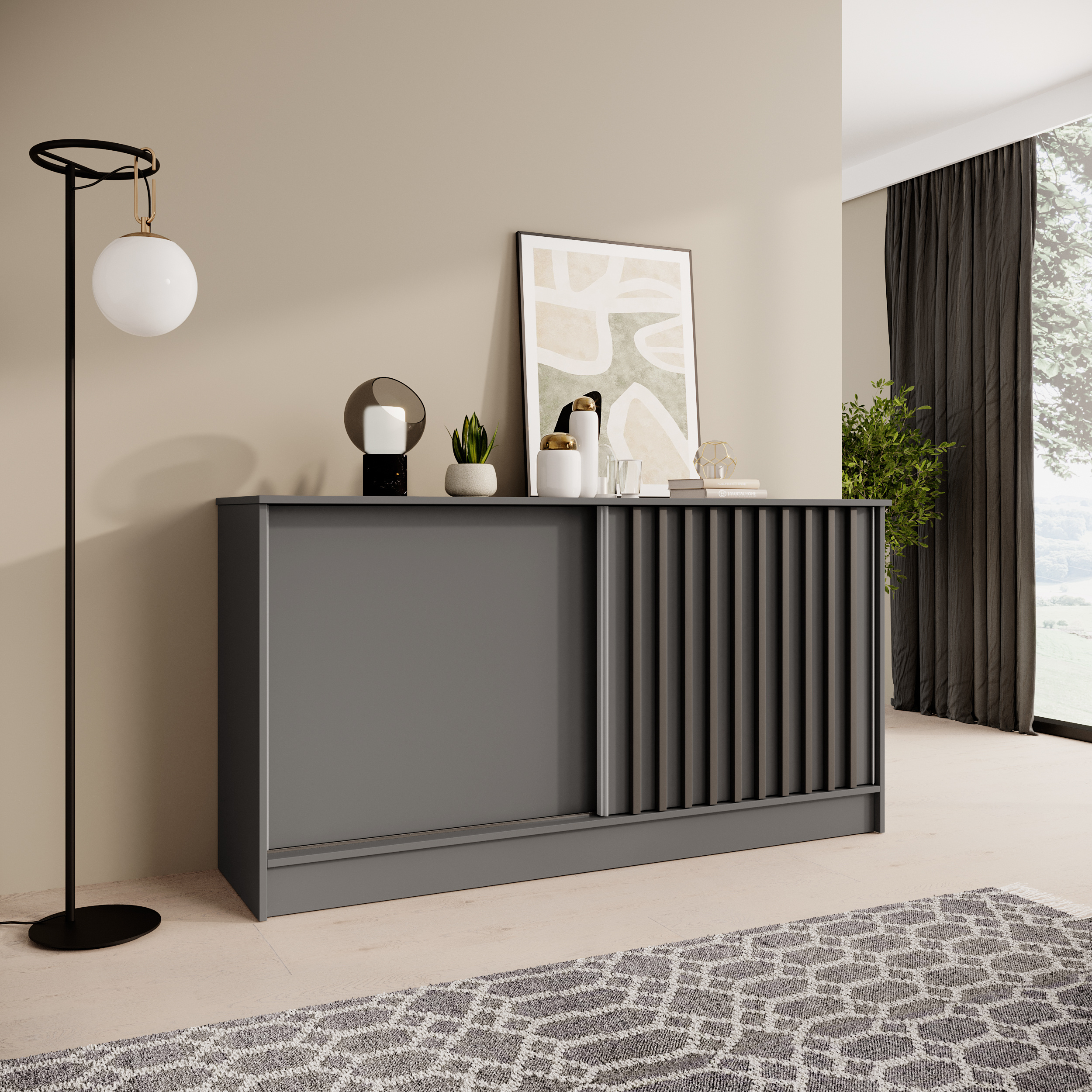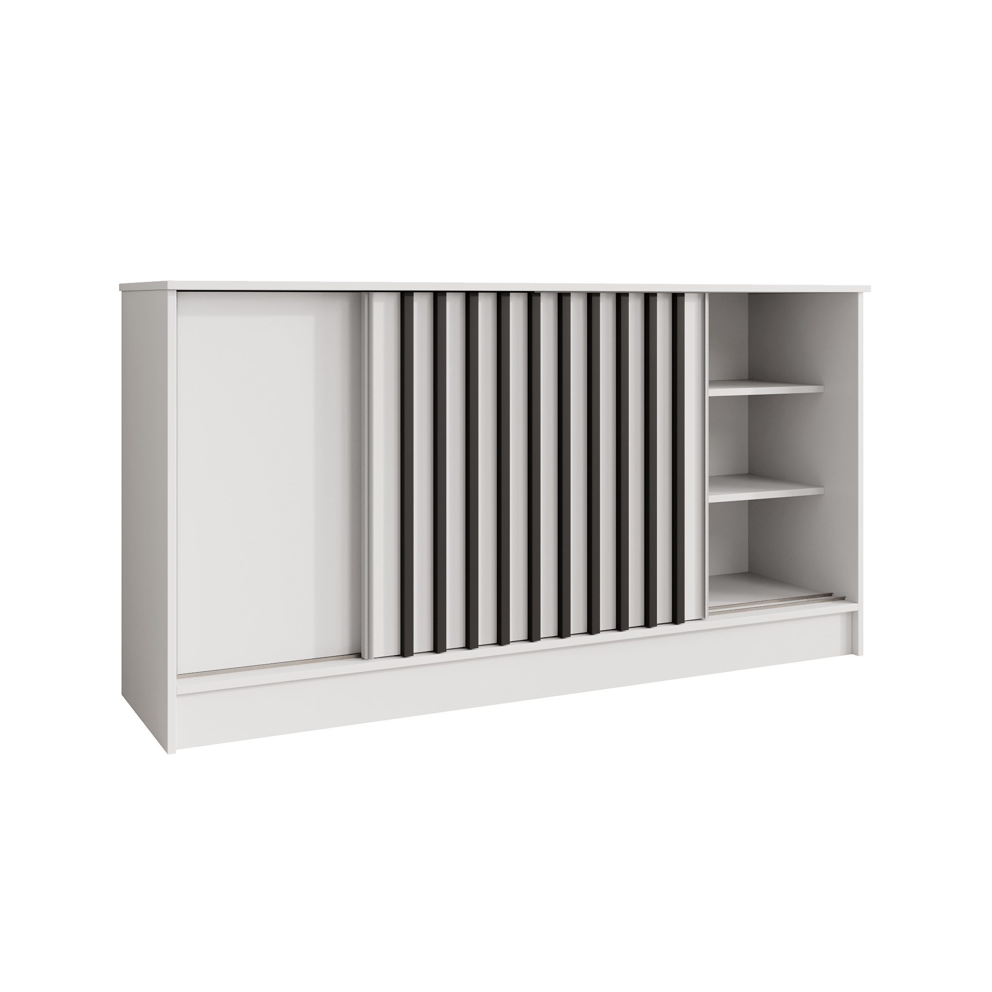 Komoda HORIZON kombinuje moderní design, funkčnost a nadčasovou eleganci. Díky dekorativním lamelovým čelům a čistým liniím se stane stylovým poutavým prvkem v každé místnosti – ať už v obývacím pokoji, ložnici nebo chodbě. Díky dvěma posuvným dvířkům nabízí komoda dostatek úložného prostoru, aniž by vyžadovala další prostor k otevírání dvířek – ideální i pro menší místnosti. Dobře navržené uspořádání umožňuje úhledné a organizované uložení oblečení, nádobí, dokumentů nebo dekorací. Komoda je k dispozici v několika moderních barevných variantách: Artisan Oak, Black, White nebo Cashmere – ideální pro harmonické začlenění do různých interiérových designových konceptů. Její elegantní vzhled lze skvěle kombinovat s nábytkem ze série