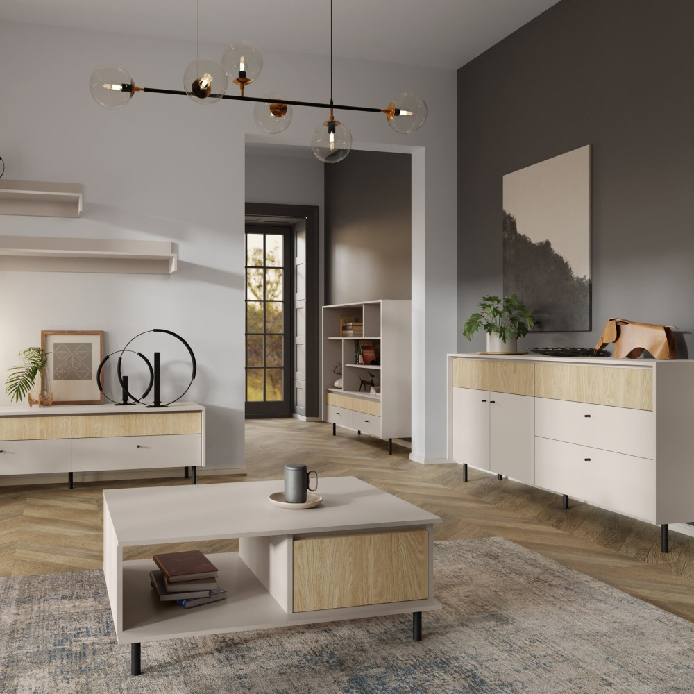 Komoda MONAKO zaujme svým moderním designem, harmonickou barevnou kombinací a funkčním uspořádáním. S rozměry 103,5 × 42 × 125,5 cm nabízí dostatek úložného prostoru pro oblečení, doplňky nebo předměty denní potřeby a díky čistým liniím se dokonale hodí do moderních obývacích pokojů a ložnic. Dvě prostorné zásuvky poskytují místo pro menší předměty, jako jsou textilie, dokumenty nebo doplňky, a pomáhají udržovat pořádek. Trojice dvířek s policemi jsou ideální pro úhledné uložení oblečení, knih nebo domácích potřeb. Harmonická barevná kombinace dodává tomuto kusu nábytku nadčasový, elegantní vzhled, který lze kombinovat mnoha způsoby. Minimalistické úchytky – podtrhují moderní design a zajišťují čisté linie. Kovové nohy a úchytky – robustní, odolné a stylový doplněk. ABS hrany – chrání komodu před poškozením a zaručují dlouhou životnost. Komoda MONAKO se 2 zásuvkami a 3 dvířky je funkční a stylový kus nábytku, který kombinuje moderní design s praktickým úložným řešením. Objevte další nábytek z kolekce MONAKO v našich dalších aukcích a vytvořte si ucelený vzhled v celém domě. Rozměry: Šířka: 103,5 cm Výška: 125,5 cm Hloubka: 42 cm Rádi bychom vás informovali, že všechny rozměry čalouněného nábytku mají toleranci +/- 2 %. Snažíme se zobrazit všechny barvy co nejpřesněji. Upozorňujeme však, že se mohou mírně lišit v důsledku nastavení monitoru a grafické karty. Toto není důvod k reklamaci. Barvy různých sérií látek se navíc mohou mírně lišit. Dodání je možné na adresy v rámci Německa. Nedodáváme na ostrovy ani do horských oblastí. Máme vlastní bezpečnou a rychlou přepravní službu. O datu dodání budete předem informováni.