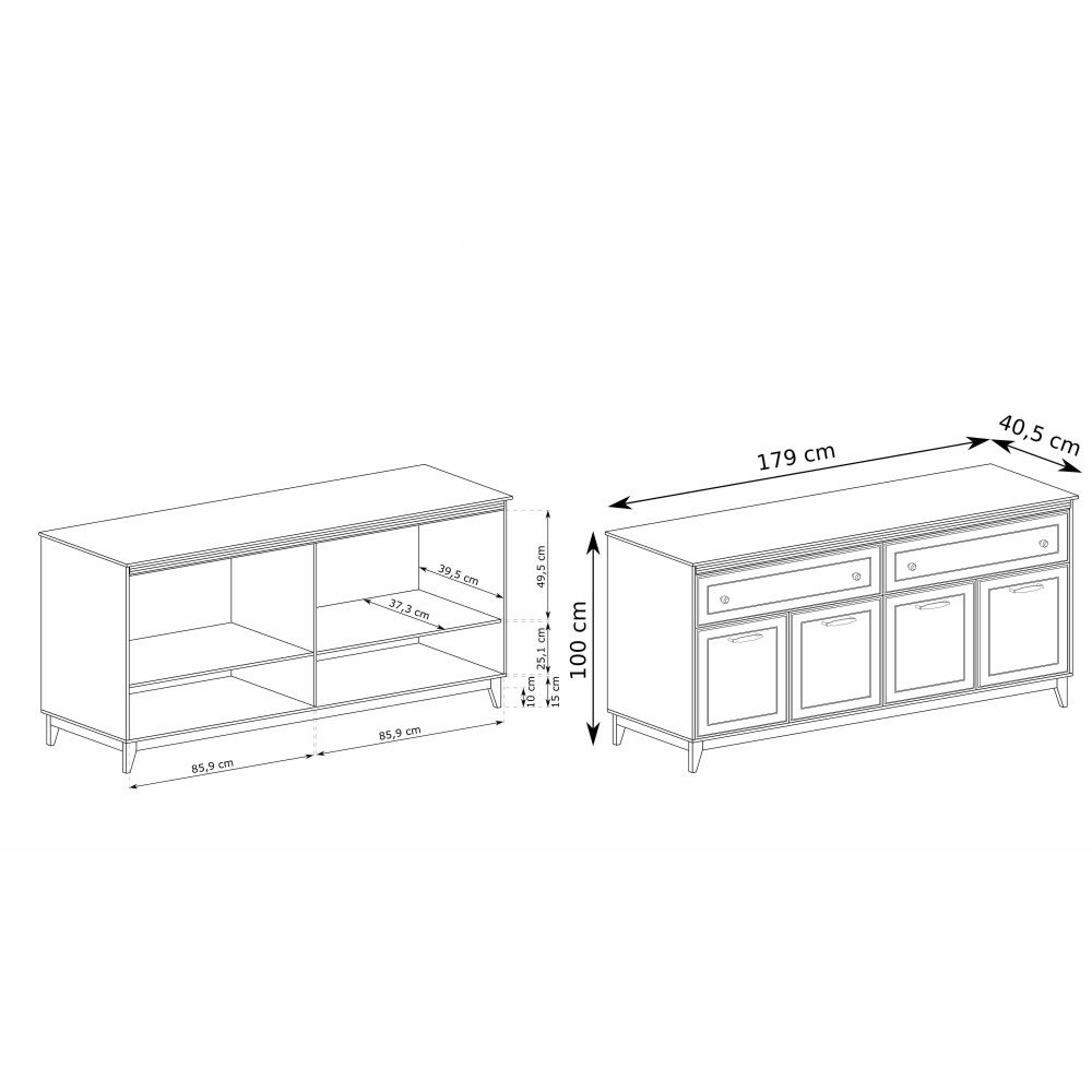 - Prostorná komoda se 4 dvířky a 2 zásuvkami,