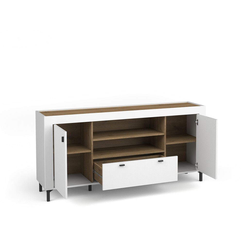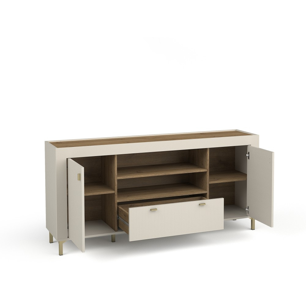 Komoda MONTA se 2 dvířky a 1 zásuvkou je elegantní a funkční kus nábytku, který vnese do každé místnosti řád a styl. Díky modernímu designu a harmonickému barevnému schématu se dokonale hodí do různých stylů interiérů – od skandinávského po industriální.