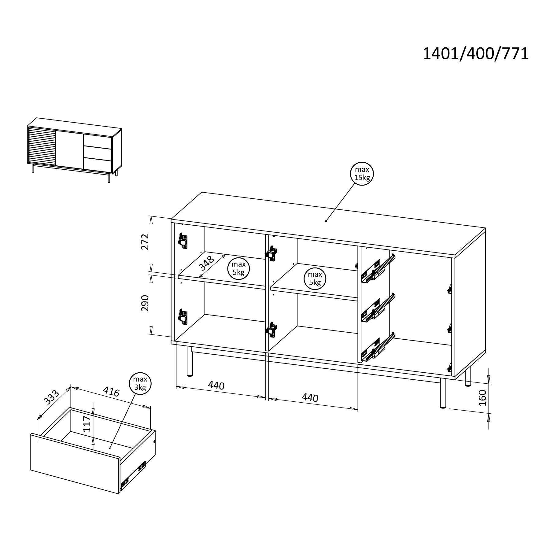 - 3 prostorné zásuvky – praktický a snadno dostupný prostor pro drobnosti,