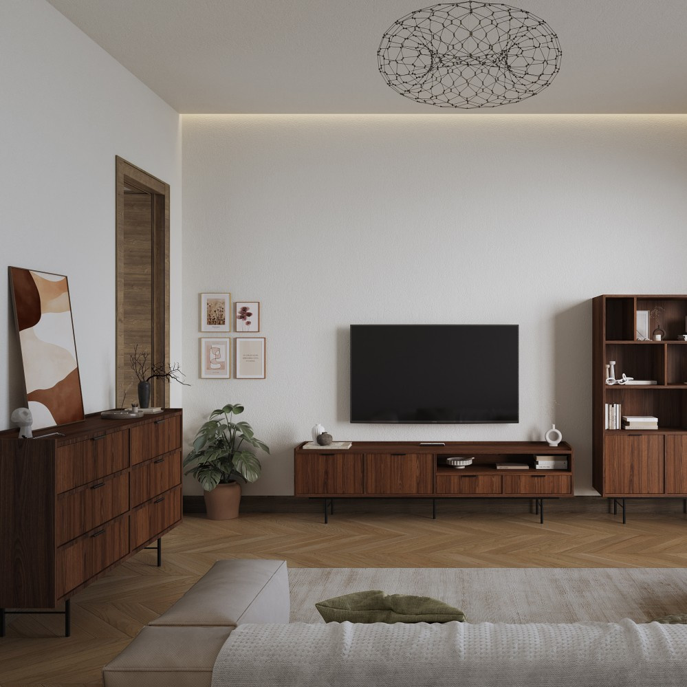 Komoda EVRON kombinuje moderní design, velkorysý úložný prostor a vysoce kvalitní zpracování. Díky svému elegantnímu vzhledu a jemným detailům harmonicky zapadne do jakéhokoli interiéru – ideální do obývacích pokojů, ložnic nebo jídelen, kde je organizace a styl stejně důležité. Promyšlené uspořádání pro optimální úložný prostor – Komoda je vybavena dvěma prostornými skříňkami, z nichž každá má poličku, a nabízí dostatek prostoru na nádobí, textilie nebo dokumenty. Navíc tři hladce se vysouvající zásuvky s kuličkovými ložisky poskytují další úložný prostor – ideální pro menší předměty, doplňky nebo předměty denní potřeby. Elegantní a robustní konstrukce – Robustní kovové nohy (vysoké 20 cm) dodávají komodě nejen moderní, vzdušný vzhled, ale také zajišťují vysokou stabilitu. Elegantně navržené kovové úchyty dodávají stylové akcenty a zdůrazňují čisté linie kusu. Díky vysoce kvalitním materiálům je komoda odolná a snadno se o ni pečuje – ideální pro každodenní použití. Moderní barevné možnosti pro každý interiér – Komoda EVRON je k dispozici ve dvou nadčasových barevných variantách – ořechově hnědá a přírodní hikory – a lze ji individuálně přizpůsobit různým stylům interiérového designu. Obě verze zdůrazňují teplý, přírodní charakter nábytku a vytvářejí útulnou obytnou atmosféru. Objevte další nábytek z kolekce EVRON v našich dalších aukcích a navrhněte si domov v jednotném stylu. Rozměry: 150 cm Výška: 90 cm Hloubka: 40 cm Rádi bychom vás informovali, že všechny rozměry čalouněného nábytku podléhají toleranci +/- 2 %. Snažíme se zobrazit všechny barvy co nejpřesněji. Upozorňujeme však, že v důsledku nastavení monitoru a grafické karty se mohou vyskytnout drobné odchylky. Toto není důvod k reklamaci. Barvy různých sérií látek se navíc mohou mírně lišit v odstínu. Dodání je možné na adresy v rámci Německa. Nedodáváme na ostrovy ani do horských oblastí. Máme vlastní bezpečnou a rychlou přepravní službu. O datu dodání budete předem informováni.