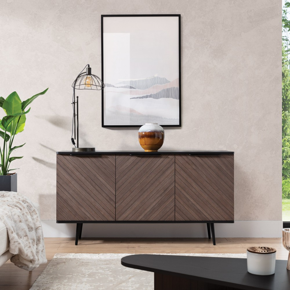 Komoda PARINI se zásuvkami kombinuje moderní design, vysoce kvalitní materiály a promyšlenou funkčnost. Díky svému elegantnímu vzhledu a robustní konstrukci je to stylový a praktický kus nábytku do obývacích pokojů, ložnic nebo jídelen. Stabilní konstrukce: Korpus a čela jsou vyrobeny z 16 mm silné dřevotřísky, která je odolná, robustní a snadno se čistí – ideální pro každodenní použití. Tichý zavírací mechanismus: Trojice pantových dvířek se zavírají jemně a tiše, což zajišťují snadné používání. Kovové nožičky: S výškou 20 cm dodávají komodě stabilitu a moderní, plovoucí vzhled. Vysoce kvalitní kovové úchyty: Doplňují čistý design a poskytují příjemný pocit při otevírání a zavírání. ABS hrany: Chrání před nárazy a prodlužují životnost komody. Stylové barevné provedení: Kombinace grafitově černé a Captain's Deck vytváří elegantní, moderní vzhled, který se dokonale hodí do různých stylů interiérového designu. Ideální rozměry: S rozměry 150 × 41 × 80 cm nabízí komoda dostatek úložného prostoru a zároveň šetří místo. Komoda PARINI je perfektní volbou pro každého, kdo oceňuje funkčnost a design. Nabízí dostatek úložného prostoru, zaujme vysoce kvalitním zpracováním a svým moderním vzhledem dodá každé místnosti stylový akcent.