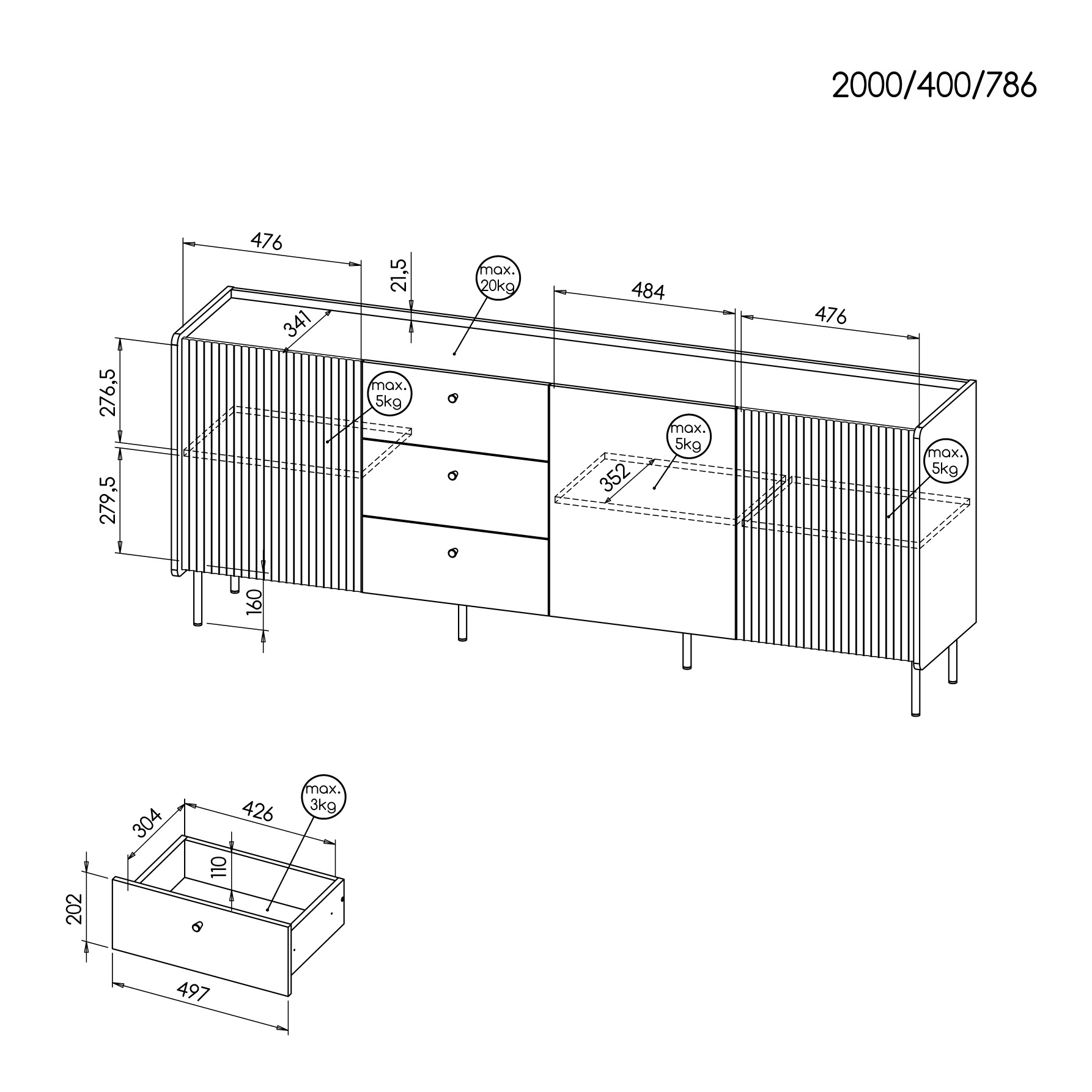 Komoda PIANO 200 cm kombinuje moderní design, velkorysý úložný prostor a vysoce kvalitní zpracování do kusu nábytku, který zaujme v každé místnosti. Díky svému elegantnímu vzhledu a praktickým vlastnostem nabízí perfektní rovnováhu mezi stylem a každodenní použitelností – ať už v obývacím pokoji, ložnici nebo chodbě. Vysoce kvalitní materiály: Přední strana je vyrobena z robustní, laminované MDF desky – odolné, snadno se čistí a ideální pro každodenní použití. Praktické zásuvky: Tři hladce se vysouvající zásuvky s kuličkovými ložisky zajišťují tiché otevírání a zavírání. Ideální pro textilie, doplňky nebo dokumenty.