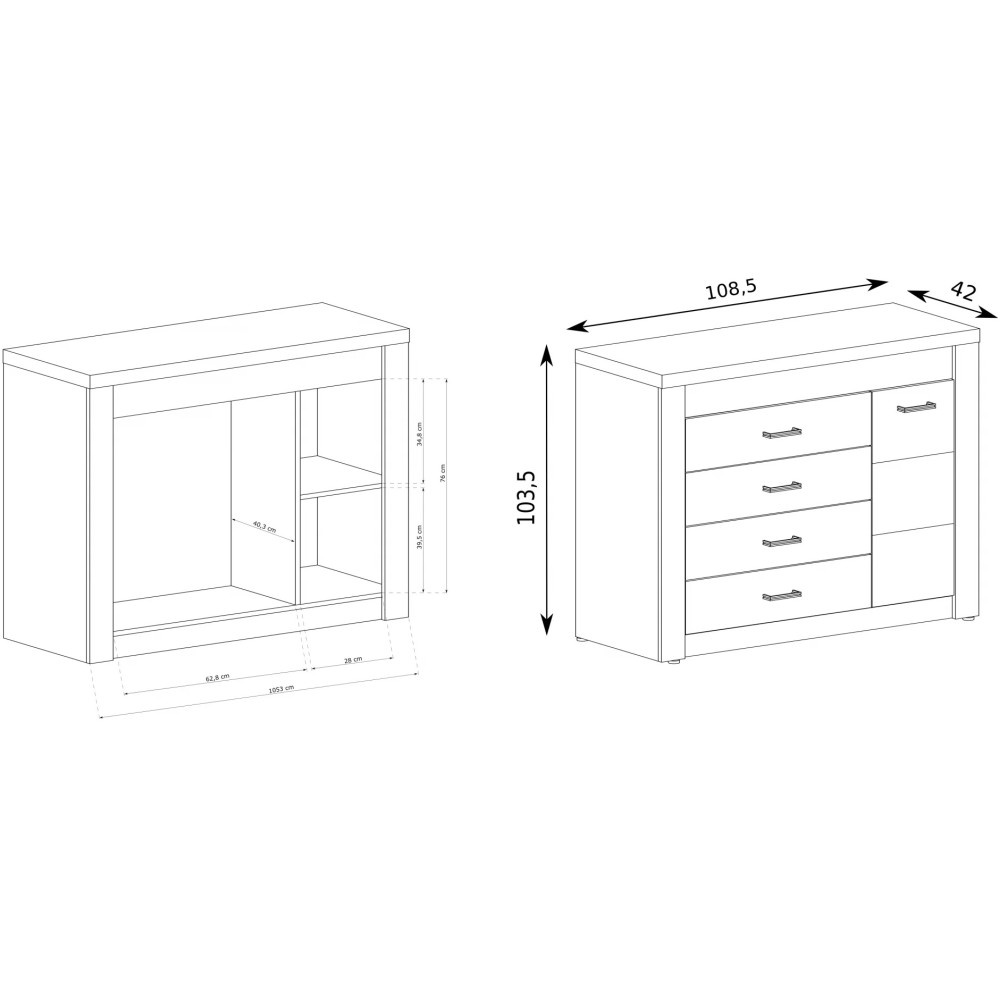 Komoda POLIS se 4 zásuvkami a 1 dvířky