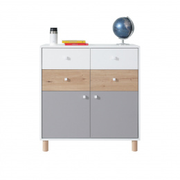 Komoda FIGO kombinuje praktický úložný prostor, moderní design a vysoce kvalitní zpracování v kompaktním kusu nábytku. S rozměry 85 × 40 × 90 cm je ideální do pokojů pro teenagery, bytů nebo menších prostor a nabízí dostatek prostoru pro oblečení, doplňky nebo předměty denní potřeby. Všestranný úložný prostor – Komoda je vybavena 4 zásuvkami a 2 dvířky a umožňuje chytré uspořádání oblečení, hraček nebo osobních věcí. Zásuvky na kolečkových vedeních zajišťují plynulé otevírání a zavírání. Vysoce kvalitní materiály – Korpus z 16mm laminované desky v kombinaci s robustními dřevěnými nohami a kovovými úchyty zaručuje odolnost, robustnost a stabilitu. Moderní design – Díla v barvě dubu Artisan, bílé a šedé dodávají komodě stylový a moderní vzhled, který harmonicky zapadá do různých stylů interiérového designu. Praktické & Úspora místa – Kompaktní rozměry a promyšlené uspořádání nabízejí maximální úložný prostor na minimálním půdorysu, ideální do menších místností nebo pokojů teenagerů. Komoda FIGO se 4 zásuvkami a 2 dvířky zaujme svým funkčním uspořádáním, elegantním designem a solidním zpracováním. Všestranný kus nábytku, který vytváří řád a opticky vylepšuje místnost. Objevte další nábytek z kolekce FIGO v našich dalších aukcích a navrhněte si domov v jednotném stylu. Rozměry: Šířka: 85 cm Výška: 90 cm Hloubka: 40 cm Rádi bychom vás informovali, že všechny rozměry čalouněného nábytku mají toleranci +/- 2 %. Snažíme se zobrazit všechny barvy co nejpřesněji. Upozorňujeme však, že se mohou mírně lišit v důsledku nastavení monitoru a grafické karty. Toto není důvod k reklamaci. Barvy různých sérií látek se navíc mohou mírně lišit. Dodání je možné na adresy v rámci Německa. Nedodáváme na ostrovy ani do horských oblastí. Máme vlastní bezpečnou a rychlou přepravní službu. O datu dodání budete předem informováni.