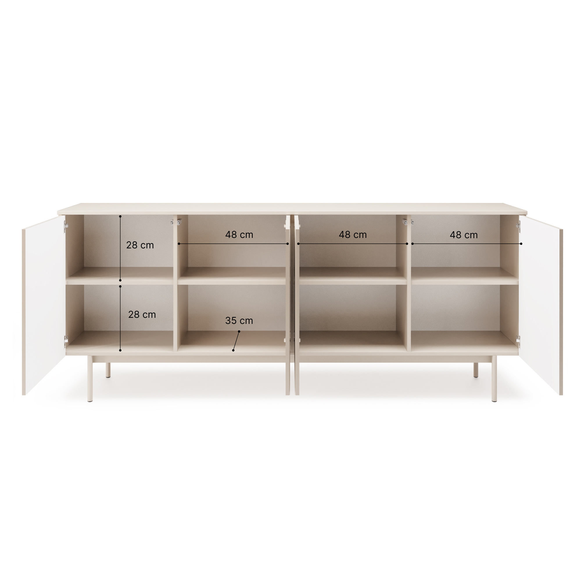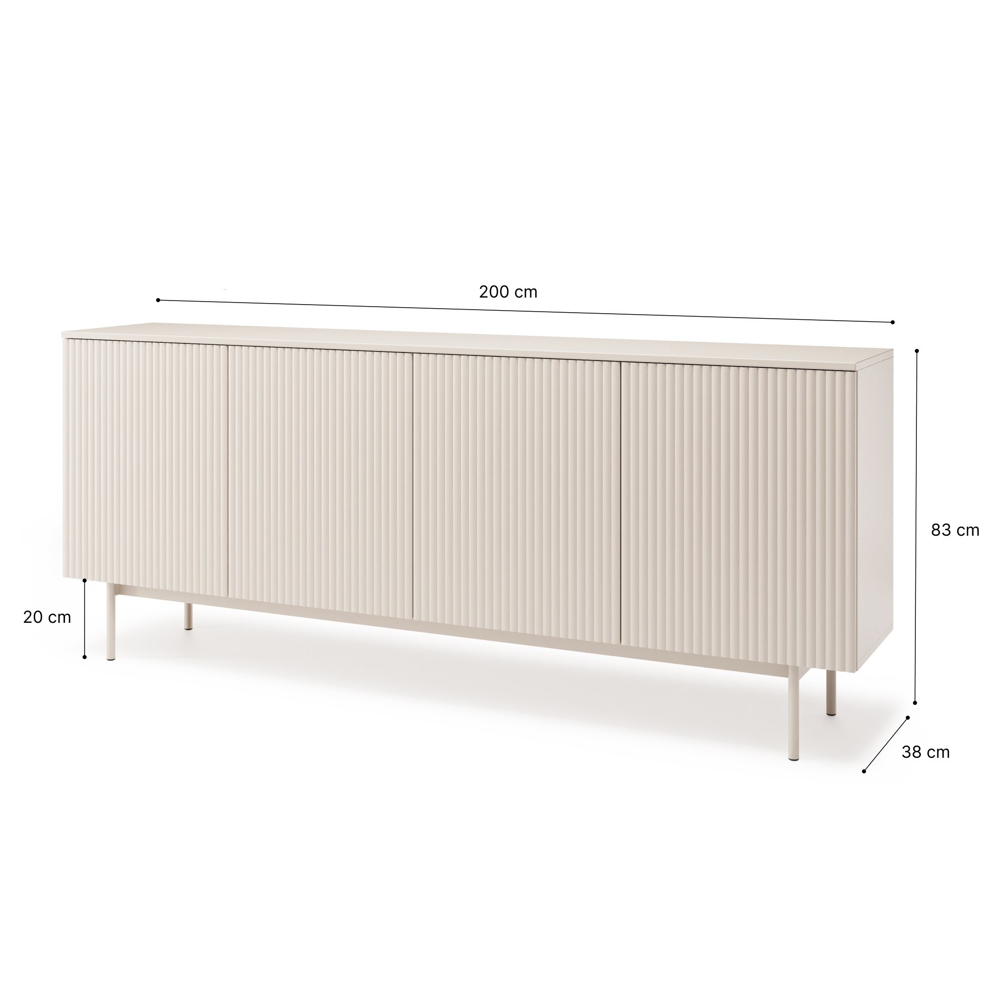 Komoda se 4 dvířky a drážkovanými čely SOFT