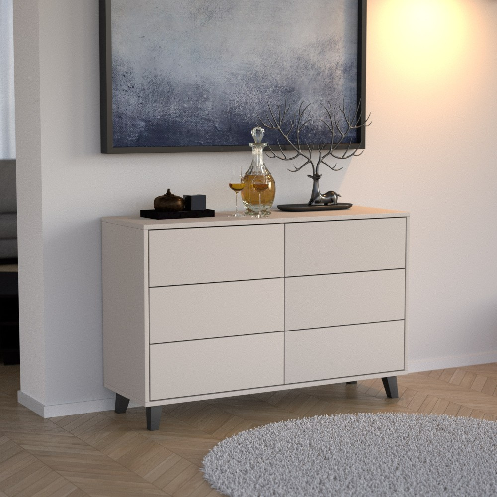 Komoda HOME se 6 zásuvkami je moderní a funkční kus nábytku, který zaujme svým minimalistickým designem a všestranností. Nabízí dostatek úložného prostoru a harmonicky se hodí do jakéhokoli interiéru – ať už v ložnici, obývacím pokoji nebo chodbě. Robustní konstrukce – vyrobena z 18 mm silné laminované desky, odolná a snadno se čistí. Pohodlná manipulace – zásuvky s kuličkovými ložisky umožňují tiché a plynulé otevírání. Individuální výběr – k dispozici s hliníkovými úchyty a kovovými nohami nebo se systémem otevírání push-to-open a dřevěnými nohami. Různé barvy – vhodné do moderního i klasického interiéru. Praktické rozměry – 120 x 80 x 40 cm, ideální pro oblečení, doplňky nebo předměty denní potřeby. Díky zdařilé kombinaci funkčnosti a estetiky se komoda HOME rychle stane nepostradatelnou součástí vašeho domova. Vytváří pořádek, dodává stylové akcenty a dokonale se přizpůsobí vašim potřebám.
