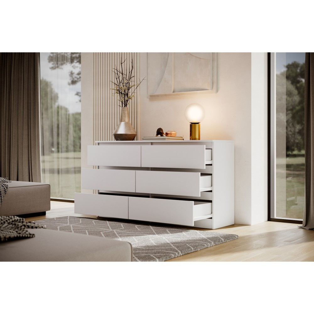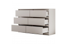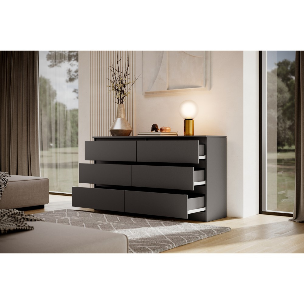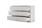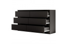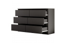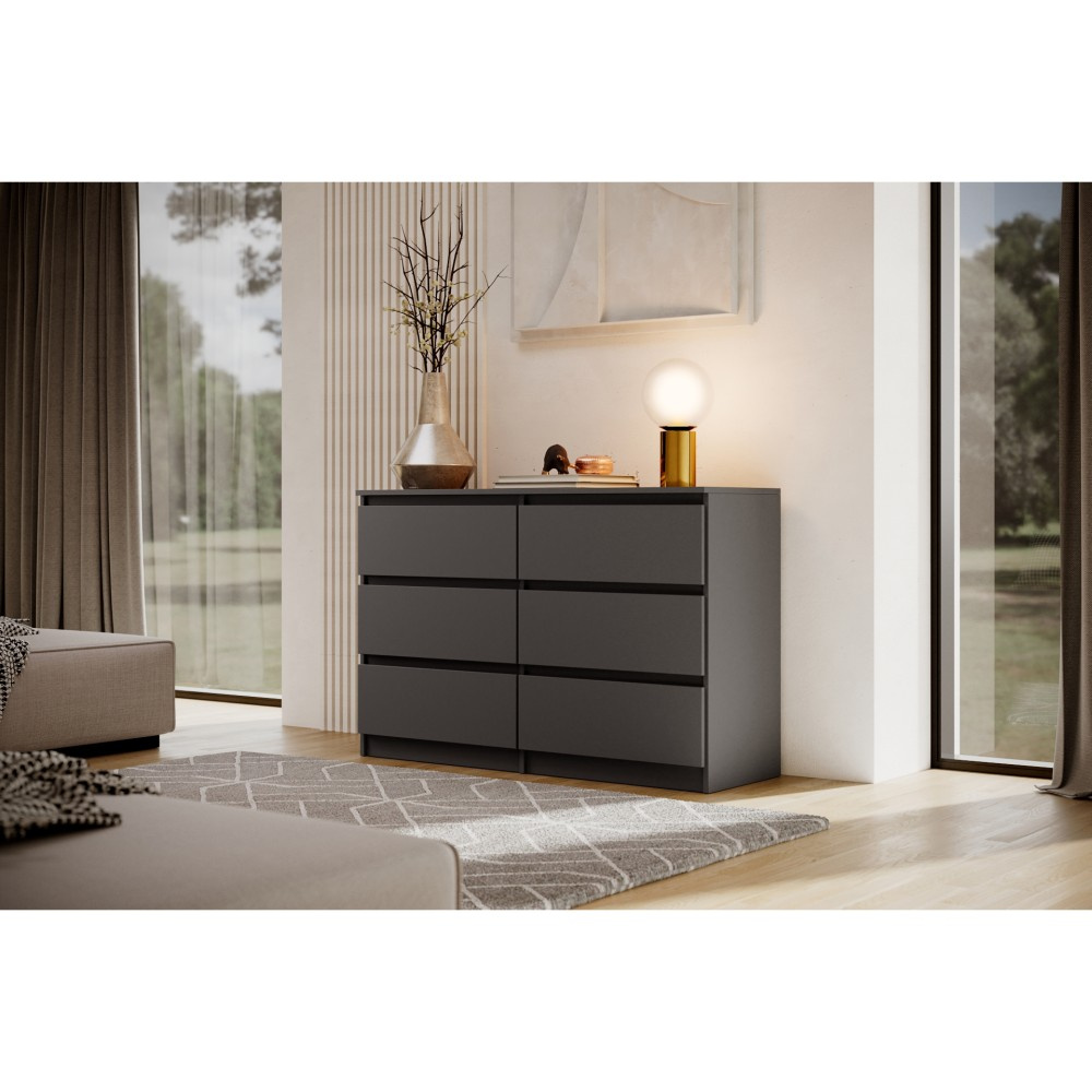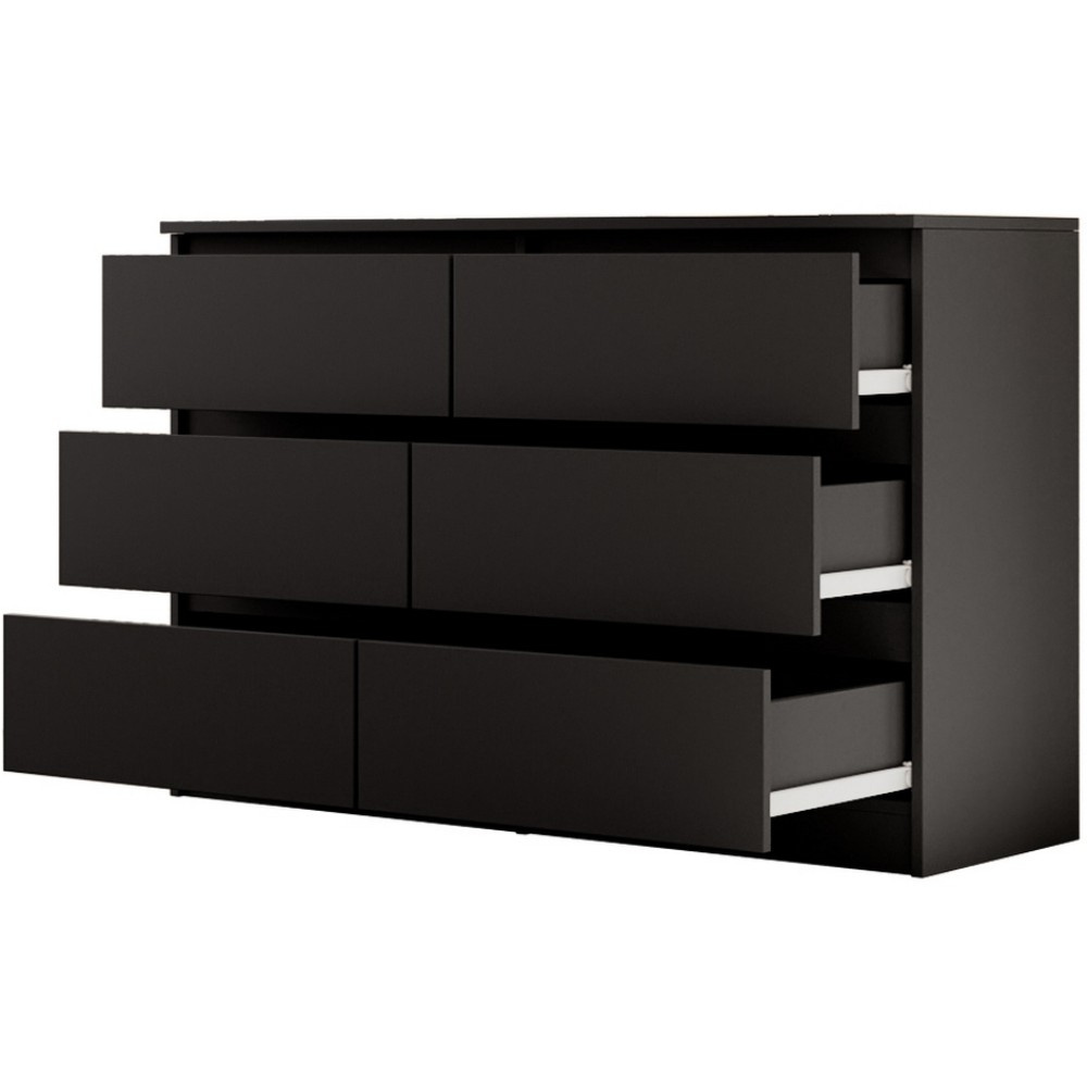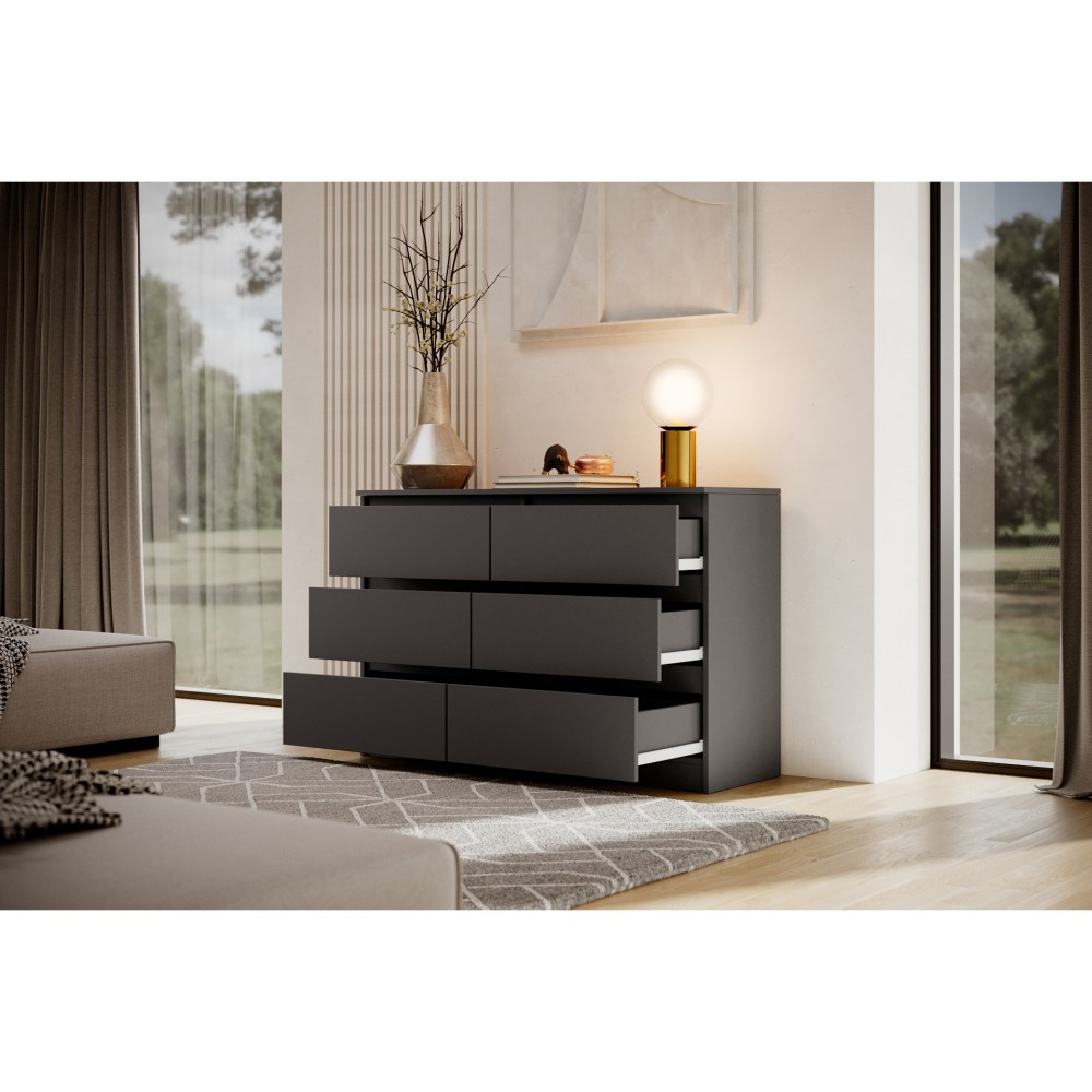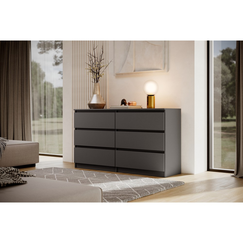 Komoda LINDA se šesti prostornými zásuvkami spojuje moderní design a praktická úložná řešení v jednom stylovém kusu nábytku. S šířkou 120 cm nebo 140 cm nabízí velkorysý úložný prostor pro vaše věci a je tak ideální pro ložnici, chodbu nebo obývací pokoj. Šest zásuvek je vybaveno stabilními vodítky, která umožňují snadné a tiché otevírání a zavírání, což z nich činí ideální řešení pro každodenní použití. Komoda je k dispozici ve třech vkusných barevných variantách, takže se může bez problémů začlenit do různých konceptů místností. Bílá verze dodává světlý, vzdušný nádech, černé provedení přináší elegantní, moderní atmosféru a varianta Sonoma přidává teplo a přirozenost. Pro zvláštní eleganci jsou modely v bílé a černé barvě také k dispozici v vysokém lesku, což místnosti dodává moderní a luxusní akcent. Se svým čistým designem a množstvím zásuvek je komoda LINDA se šesti zásuvkami ideálním řešením pro všechny, kteří hledají stylový úložný prostor a jednoduchou estetiku. Ať už jde o oblečení, doplňky nebo jiné předměty – tato komoda nabízí spoustu místa a přináší pořádek a eleganci do každé místnosti.
