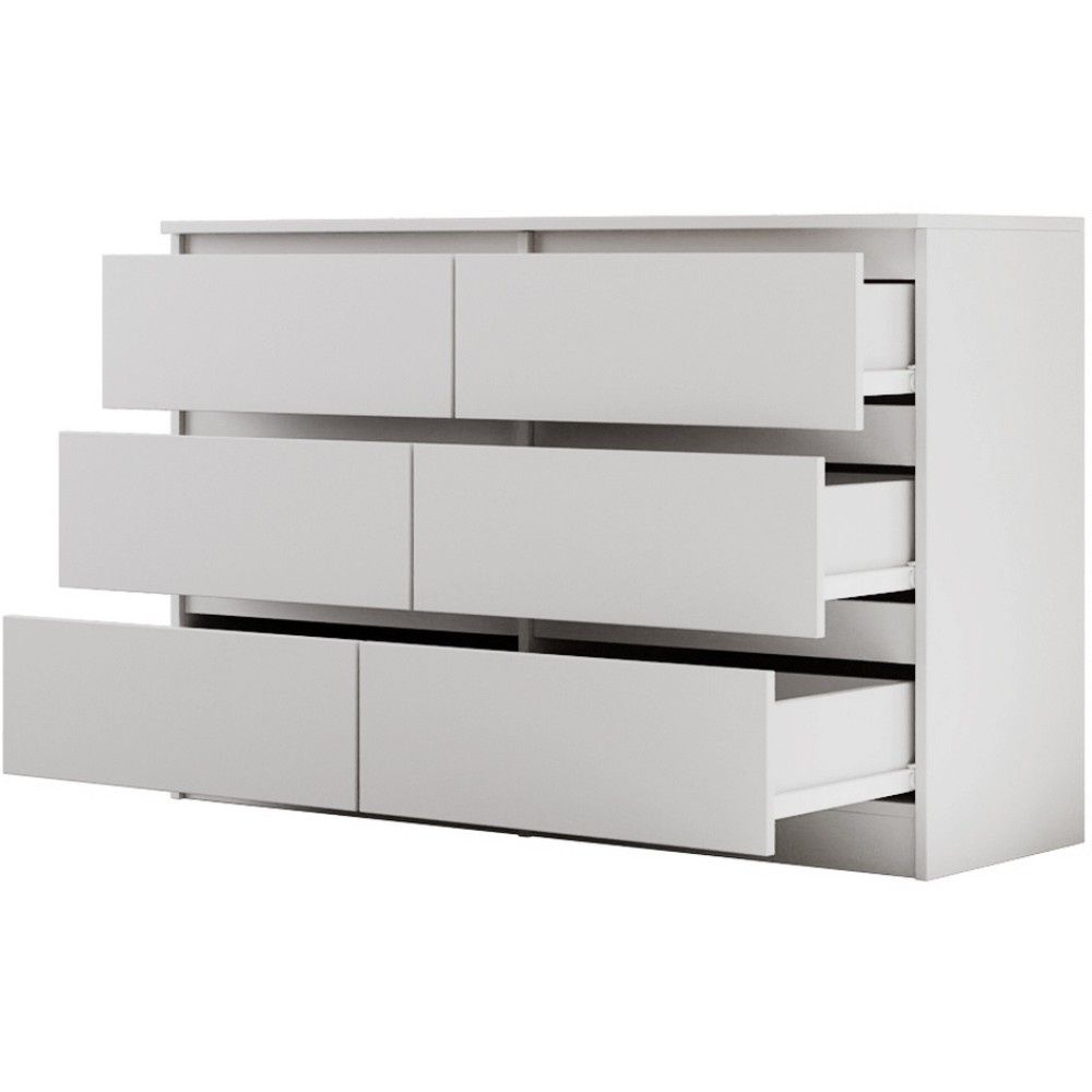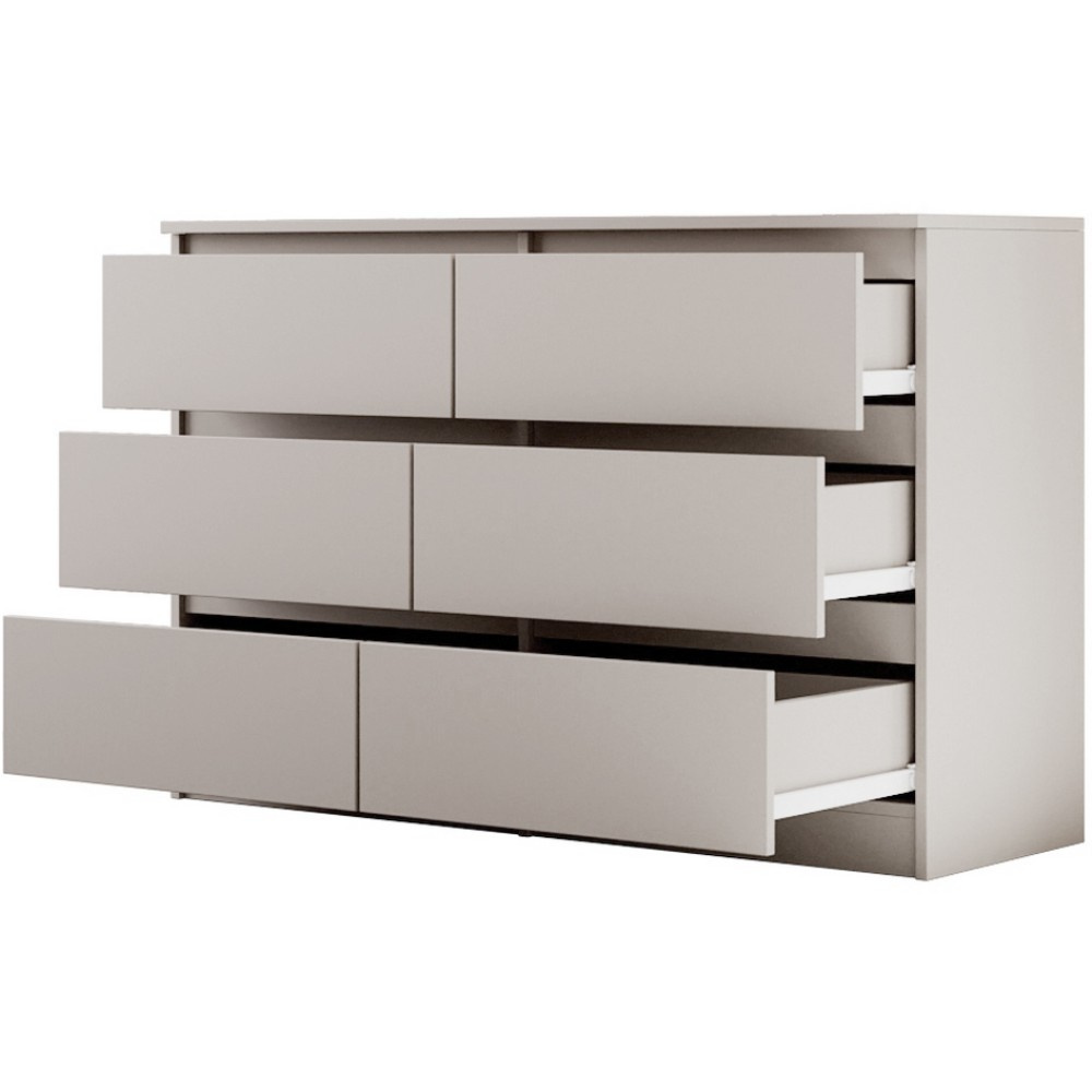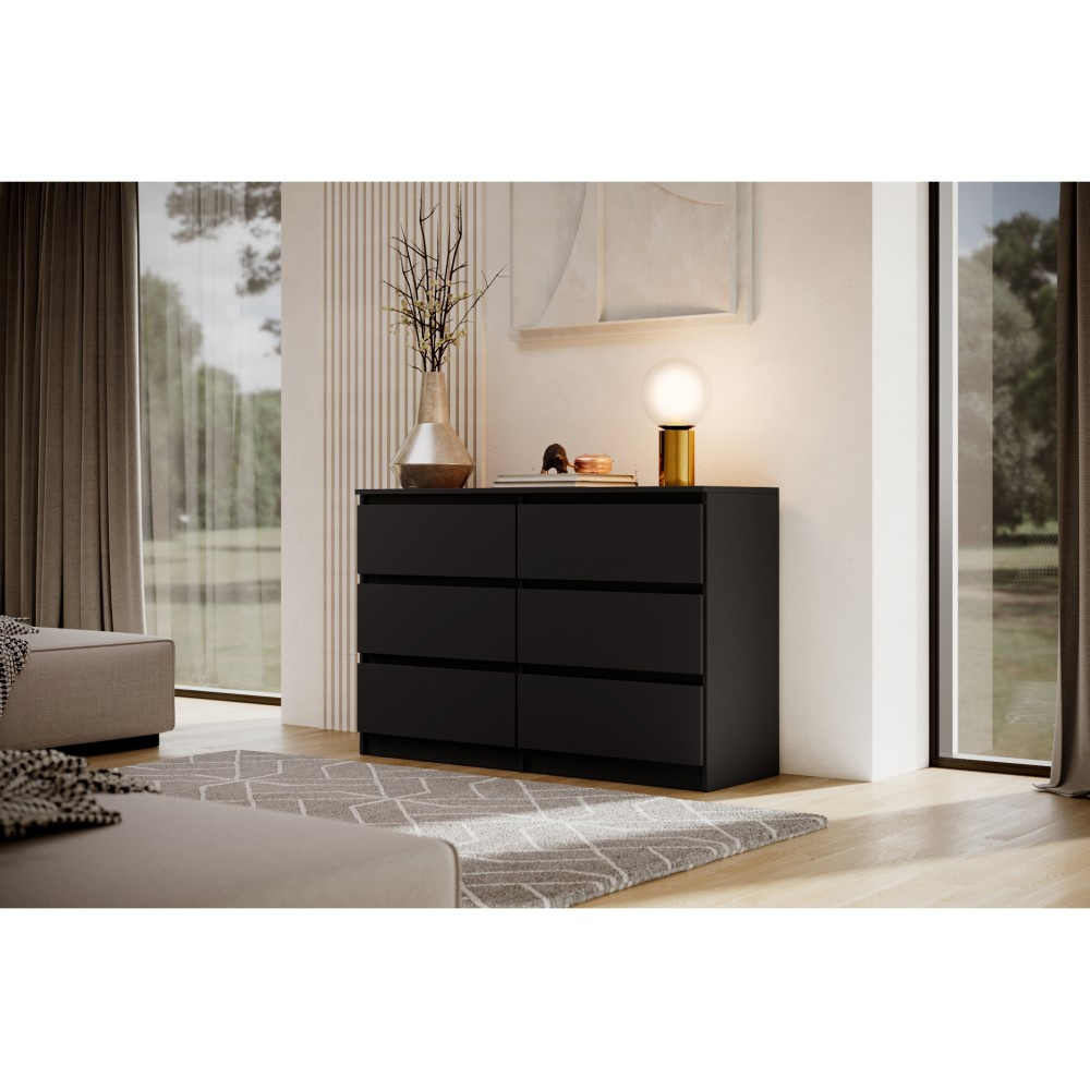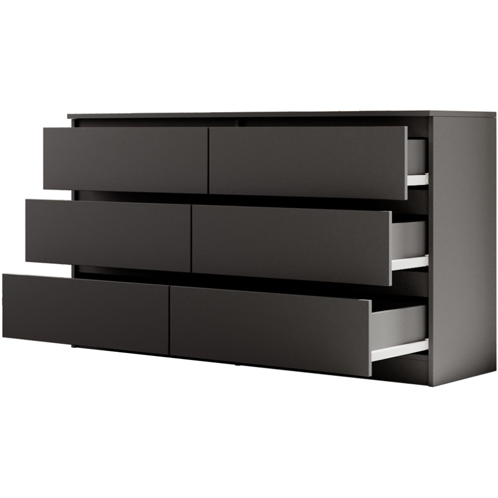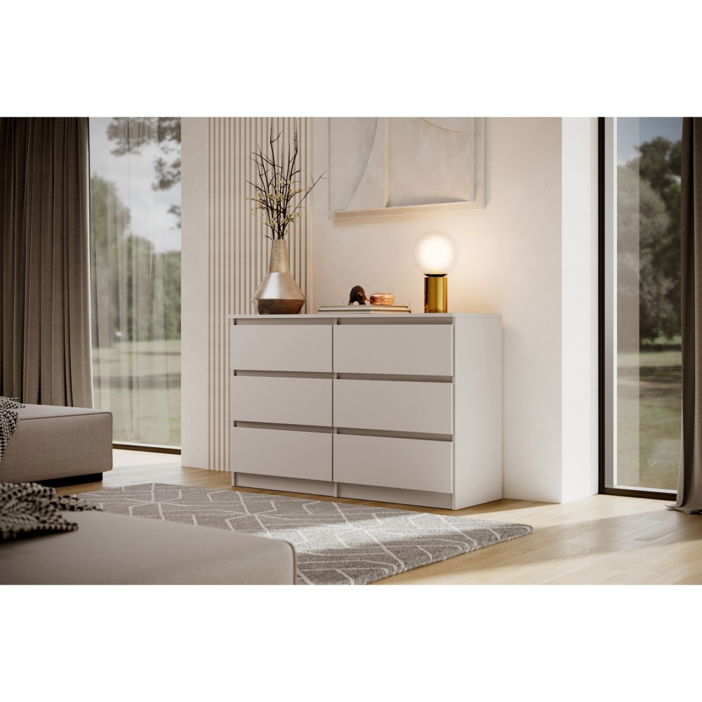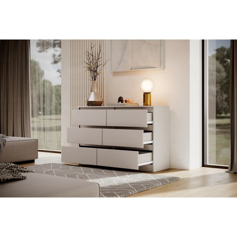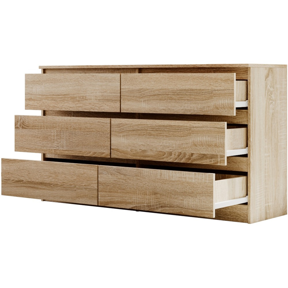 Komoda LINDA se šesti prostornými zásuvkami spojuje moderní design a praktická úložná řešení v jednom stylovém kusu nábytku. S šířkou 120 cm nebo 140 cm nabízí velkorysý úložný prostor pro vaše věci a je tak ideální pro ložnici, chodbu nebo obývací pokoj. Šest zásuvek je vybaveno stabilními vodítky, která umožňují snadné a tiché otevírání a zavírání, což z nich činí ideální řešení pro každodenní použití. Komoda je k dispozici ve třech vkusných barevných variantách, takže se může bez problémů začlenit do různých konceptů místností. Bílá verze dodává světlý, vzdušný nádech, černé provedení přináší elegantní, moderní atmosféru a varianta Sonoma přidává teplo a přirozenost. Pro zvláštní eleganci jsou modely v bílé a černé barvě také k dispozici v vysokém lesku, což místnosti dodává moderní a luxusní akcent. Se svým čistým designem a množstvím zásuvek je komoda LINDA se šesti zásuvkami ideálním řešením pro všechny, kteří hledají stylový úložný prostor a jednoduchou estetiku. Ať už jde o oblečení, doplňky nebo jiné předměty – tato komoda nabízí spoustu místa a přináší pořádek a eleganci do každé místnosti.