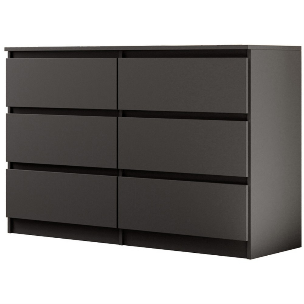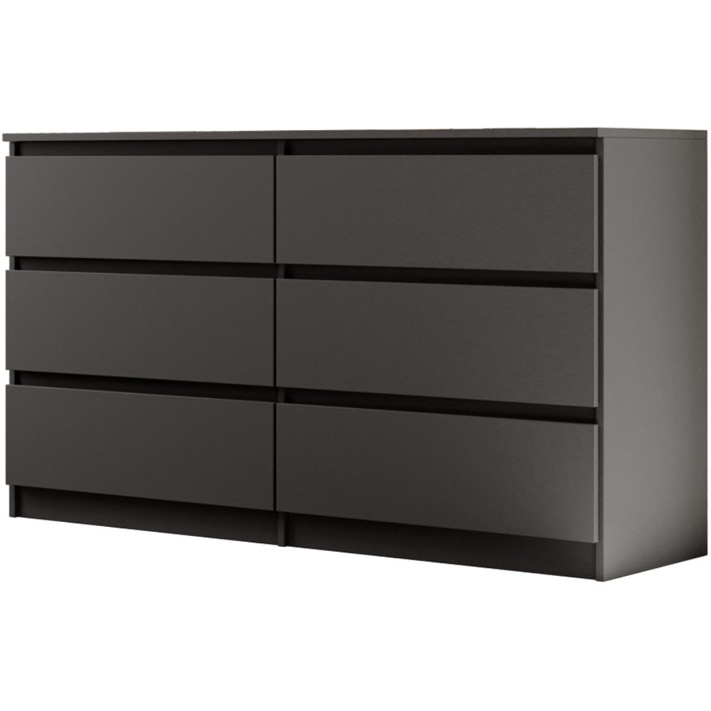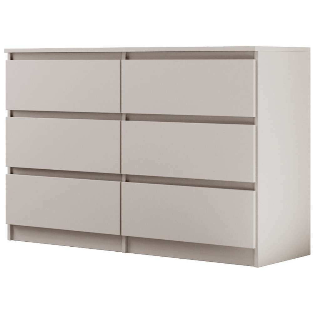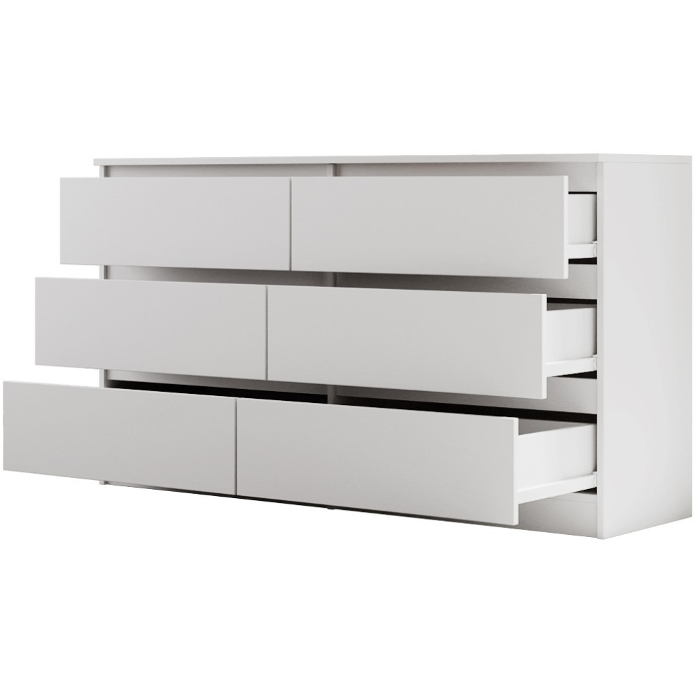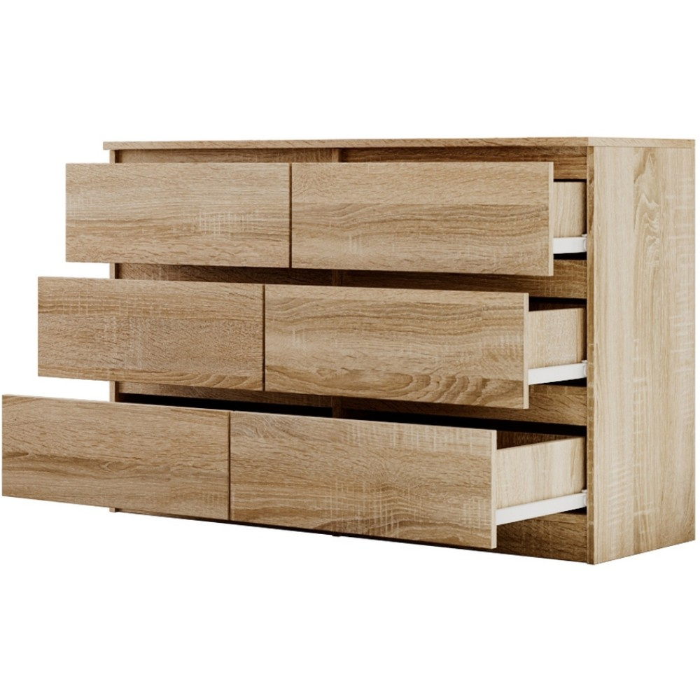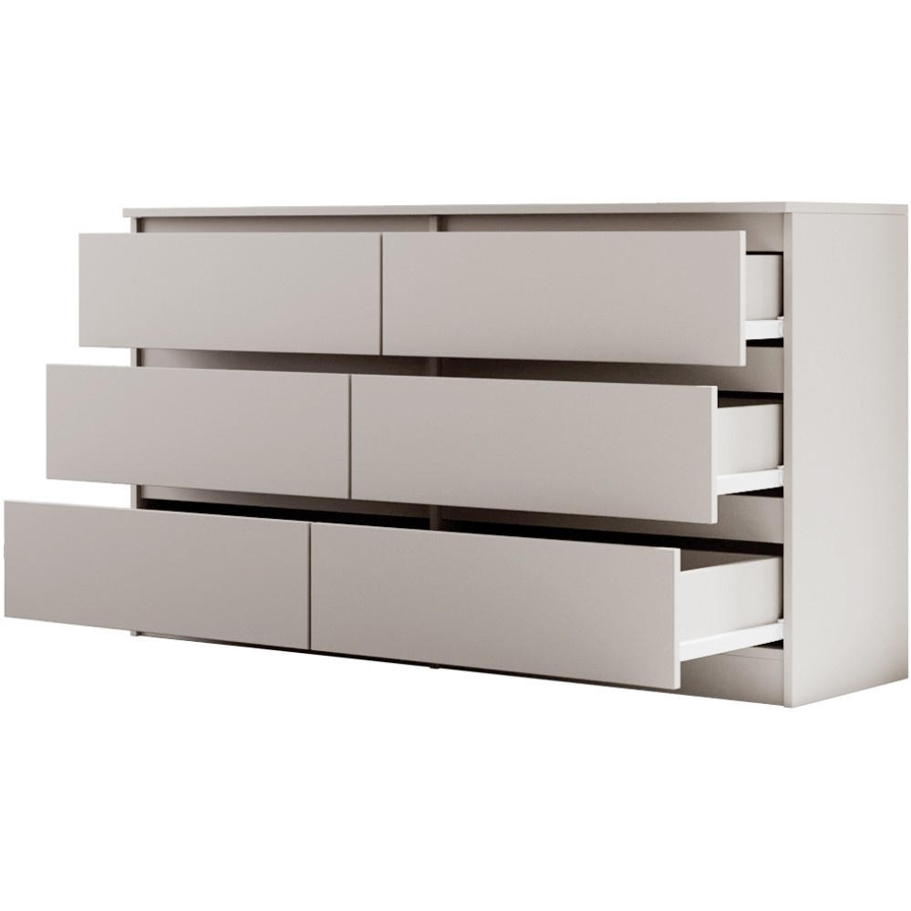 Komoda LINDA se šesti prostornými zásuvkami spojuje moderní design a praktická úložná řešení v jednom stylovém kusu nábytku. S šířkou 120 cm nebo 140 cm nabízí velkorysý úložný prostor pro vaše věci a je tak ideální pro ložnici, chodbu nebo obývací pokoj. Šest zásuvek je vybaveno stabilními vodítky, která umožňují snadné a tiché otevírání a zavírání, což z nich činí ideální řešení pro každodenní použití. Komoda je k dispozici ve třech vkusných barevných variantách, takže se může bez problémů začlenit do různých konceptů místností. Bílá verze dodává světlý, vzdušný nádech, černé provedení přináší elegantní, moderní atmosféru a varianta Sonoma přidává teplo a přirozenost. Pro zvláštní eleganci jsou modely v bílé a černé barvě také k dispozici v vysokém lesku, což místnosti dodává moderní a luxusní akcent. Se svým čistým designem a množstvím zásuvek je komoda LINDA se šesti zásuvkami ideálním řešením pro všechny, kteří hledají stylový úložný prostor a jednoduchou estetiku. Ať už jde o oblečení, doplňky nebo jiné předměty – tato komoda nabízí spoustu místa a přináší pořádek a eleganci do každé místnosti.
