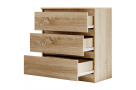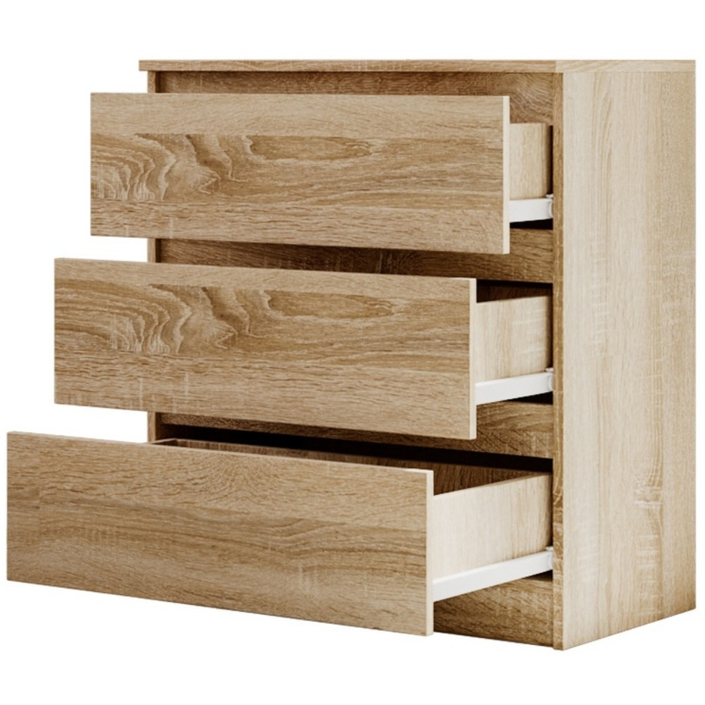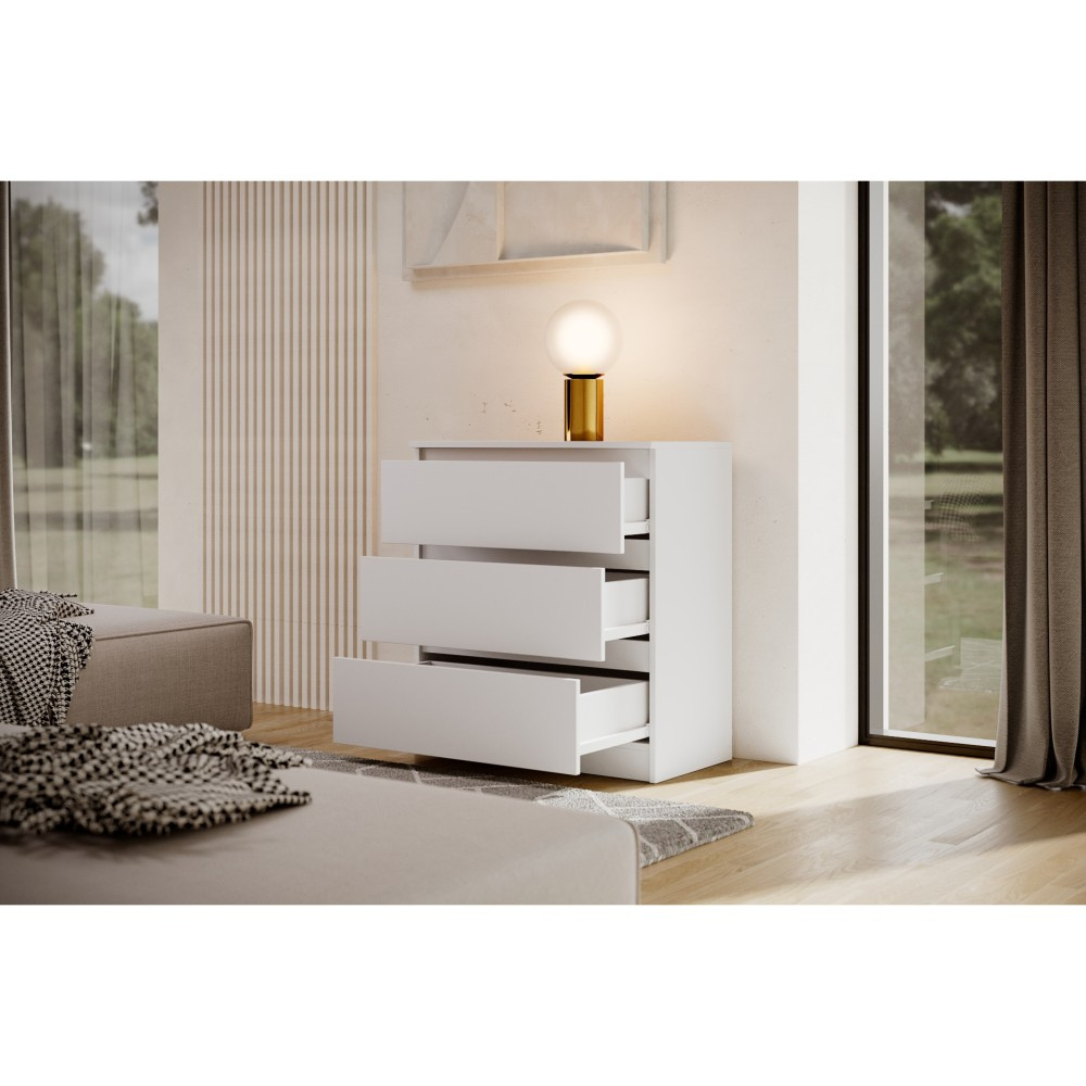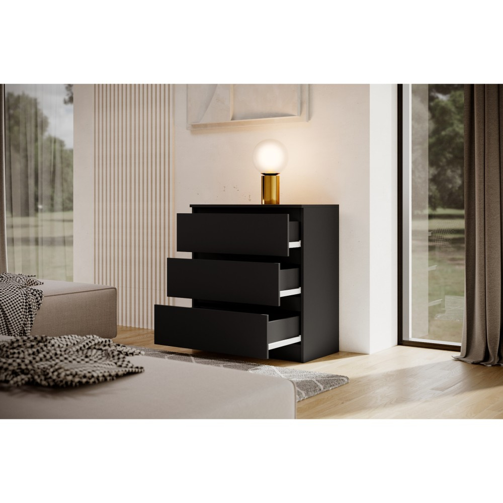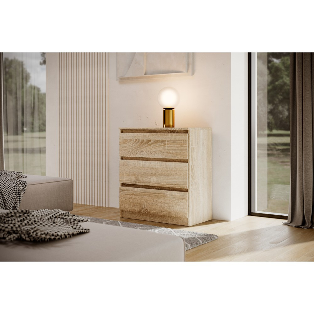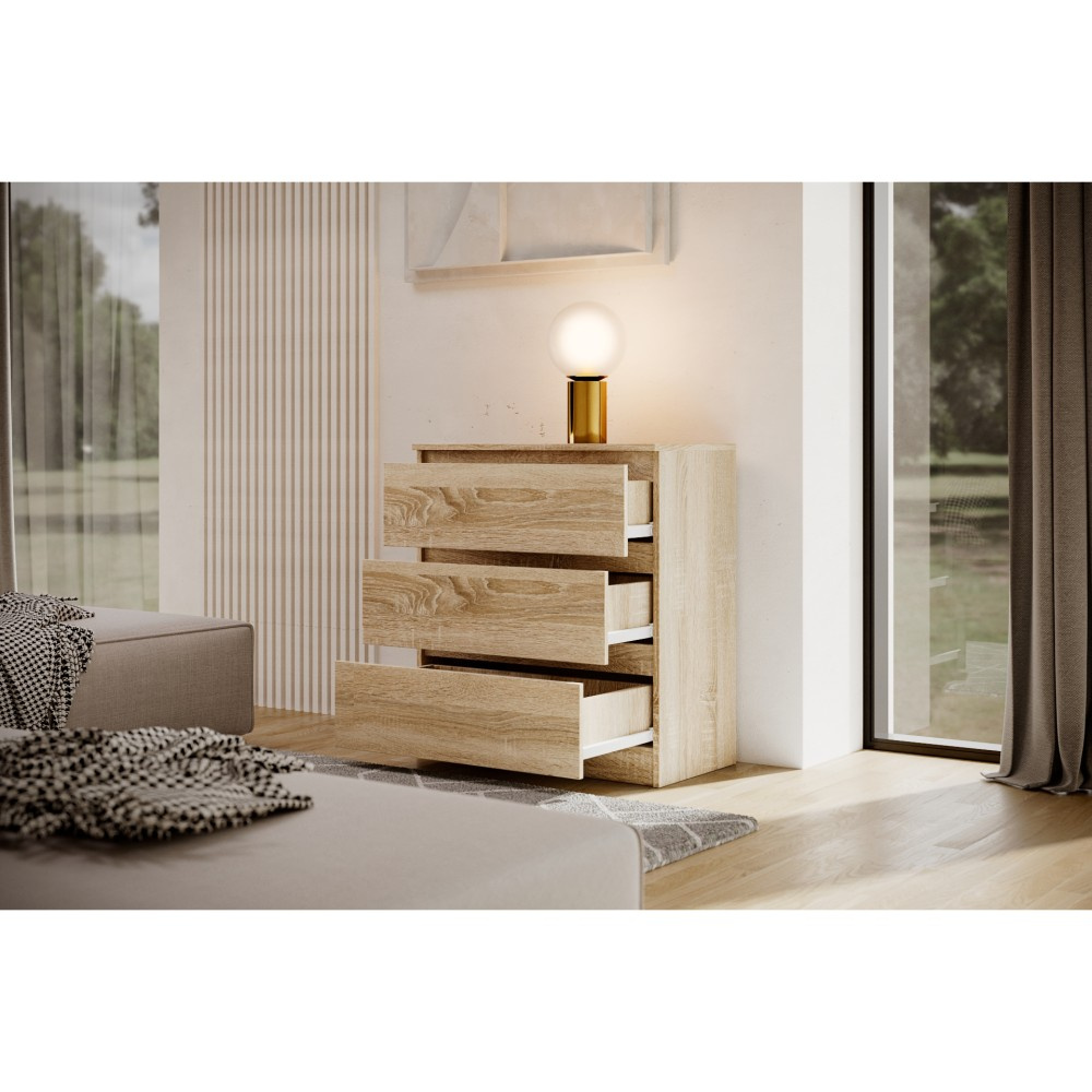 Komoda LINDA se třemi prostornými zásuvkami je elegantní a všestranný kus nábytku, který se harmonicky začlení do každého moderního interiéru. Díky svému jednoduchému tvaru a minimalistickému designu je stylovým doplňkem pro různé obytné prostory, ať už je to ložnice, chodba nebo obývací pokoj. Tři zásuvky poskytují dostatek úložného prostoru pro uspořádané uložení každodenních předmětů, oblečení nebo doplňků a jsou vybaveny praktickými vodítky, která umožňují snadné a tiché otevírání a zavírání. Tato komoda je k dispozici ve třech atraktivních barevných variantách, které každé místnosti dodají osobitý nádech. Verze v klasické bílé zprostředkovává nadčasový vzhled, zatímco varianta v černé představuje eleganci a styl. Kdo dává přednost přírodním a teplým akcentům, najde v provedení Sonoma ideální kus nábytku, který místnosti dodá jemný, přírodní vzhled. Pro moderní, elegantní atmosféru nabízí komoda LINDA v bílé a černé také možnost vysokého lesku, která zajišťuje dodatečnou lehkost a rafinovanost. Se svým kompaktním, ale přesto prostorným designem je komoda LINDA se třemi zásuvkami ideálním řešením pro všechny, kteří chtějí spojit funkčnost s moderním stylem.