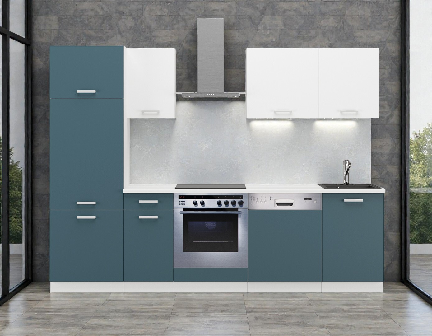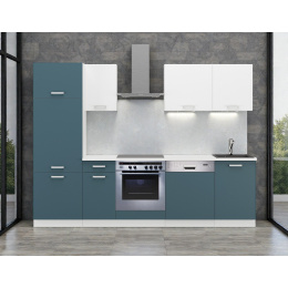 Hledáte kuchyni, která působí moderně, čistě a zároveň útulně? Sestava Alena v unikátním modrošedém odstínu Skagerrak v kombinaci s bílou je inspirována barvami severské přírody. Tato 270 cm dlouhá linka nabízí perfektní řešení pro každého, kdo chce spojit stylový design s plnou funkčností pro vestavné spotřebiče.