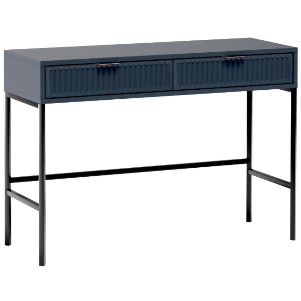 dekorativní příborník v obývacím pokoji. Jemné detaily a minimalistický design bez úchytek vytvářejí klidný a přehledný vzhled. Stylový konzolový stolek v moderním loftovém designu s dekorativní žebrovanou texturou. Dvě prostorné zásuvky pro funkční každodenní úložný prostor. Všestranné použití: jako konzolový stolek, toaletní stolek nebo příborník. Čistý, minimalistický design – ideální pro moderní interiéry. Perfektní doplněk k ostatnímu nábytku z kolekce LINNA. Tři elegantní barevné varianty: Indigo, Kašmír a Kašmír.