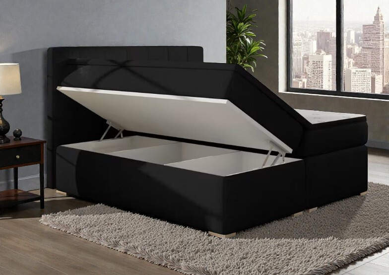- Obrovský úložný prostor: Postel je vybavena dvěma prostornými kontejnery na lůžkoviny. Přístup k nim je díky pružinovému mechanismu, který lehce zvedne horní část matrace, naprosto jednoduchý a plynulý.