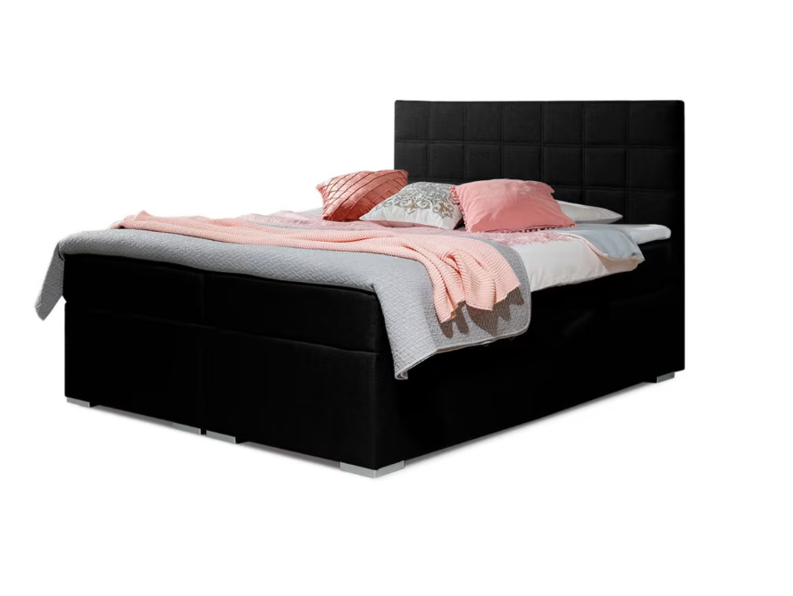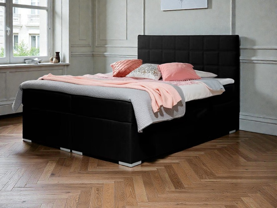 - Elegance v každém detailu: Černé čalounění v odolné tkanině Savana působí luxusně a snadno se kombinuje s ostatními doplňky v ložnici.
