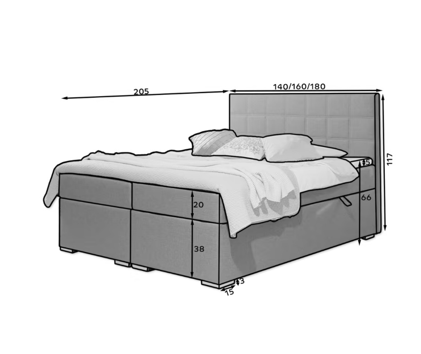 - Vysoká ložná plocha: S výškou sedu 66 cm se z postele Alice neuvěřitelně snadno vstává, což šetří vaše klouby a páteř.