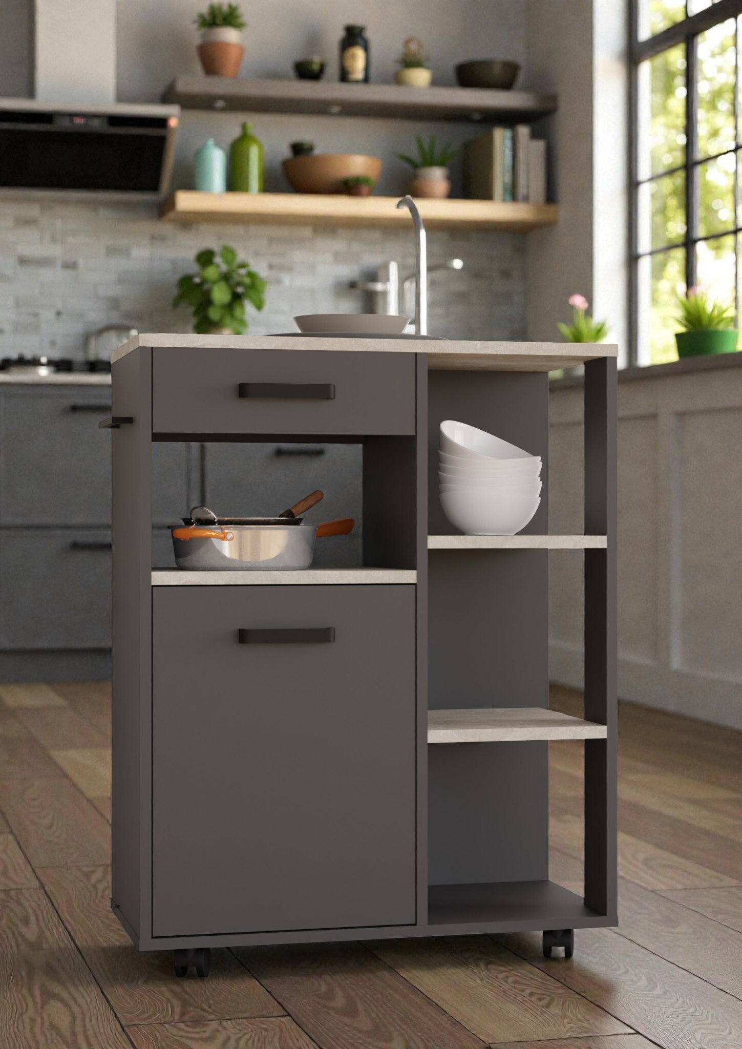 Hledáte úložný prostor, který vypadá stejně dobře jako funguje? Tento kredenc kombinuje tmavé, matné tóny s texturou betonu a vytváří tak nadčasový kus nábytku v "loftovém" stylu.