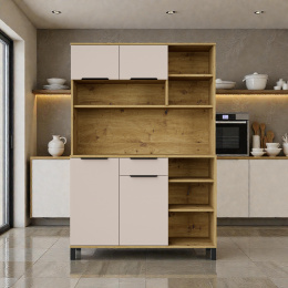 Hledáte nábytek, který zklidní interiér a dodá mu hřejivé světlo? Tento kredenc kombinuje sametově jemný odstín kašmíru s divokou kresbou dubu artisan. Je ideální volbou pro ty, kteří chtějí moderní kuchyni, jež působí domácky a přívětivě.