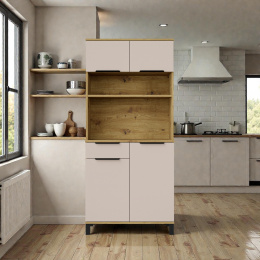 Hledáte nábytek, který zklidní interiér a dodá mu hřejivé světlo? Tento kredenc kombinuje sametově jemný odstín kašmíru s divokou kresbou dubu artisan. Je ideální volbou pro ty, kteří chtějí moderní kuchyni, jež působí domácky a přívětivě.