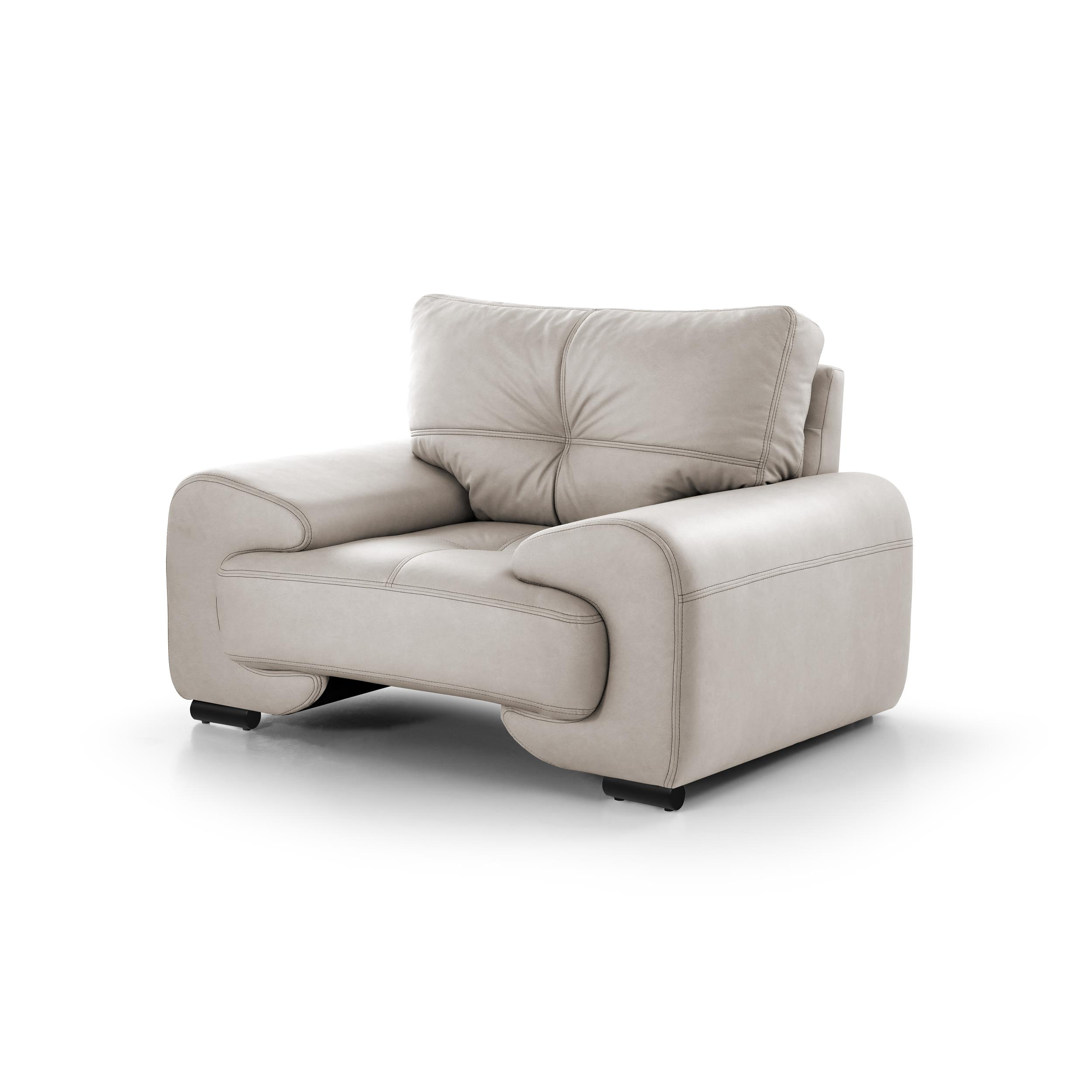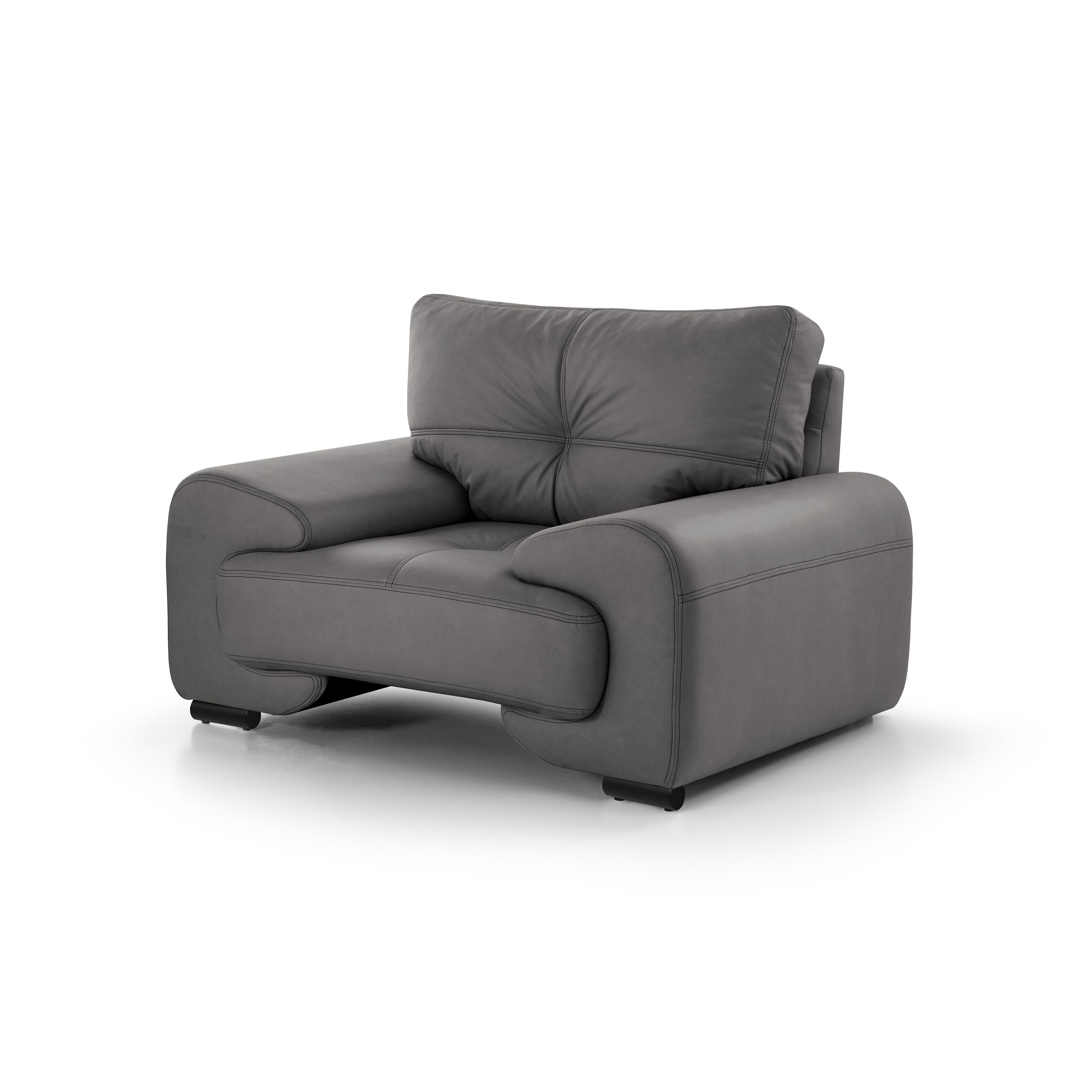 Sedací souprava Omega je vynikající volbou pro všechny, kteří hledají pohodlný a zároveň stylový kus nábytku do svého obývacího pokoje. Bude také velmi dobře fungovat v dětském pokoji nebo pokoji pro mládež. Sada sestávající z křesla, dvoumístné pohovky a třímístné pohovky Silným akcentem, který podtrhuje vizuální atraktivitu pohovky Omega, jsou nohy v barvě chromu. Moderní sedací souprava Omega je čalouněna umělou kůží s jemnou texturou.