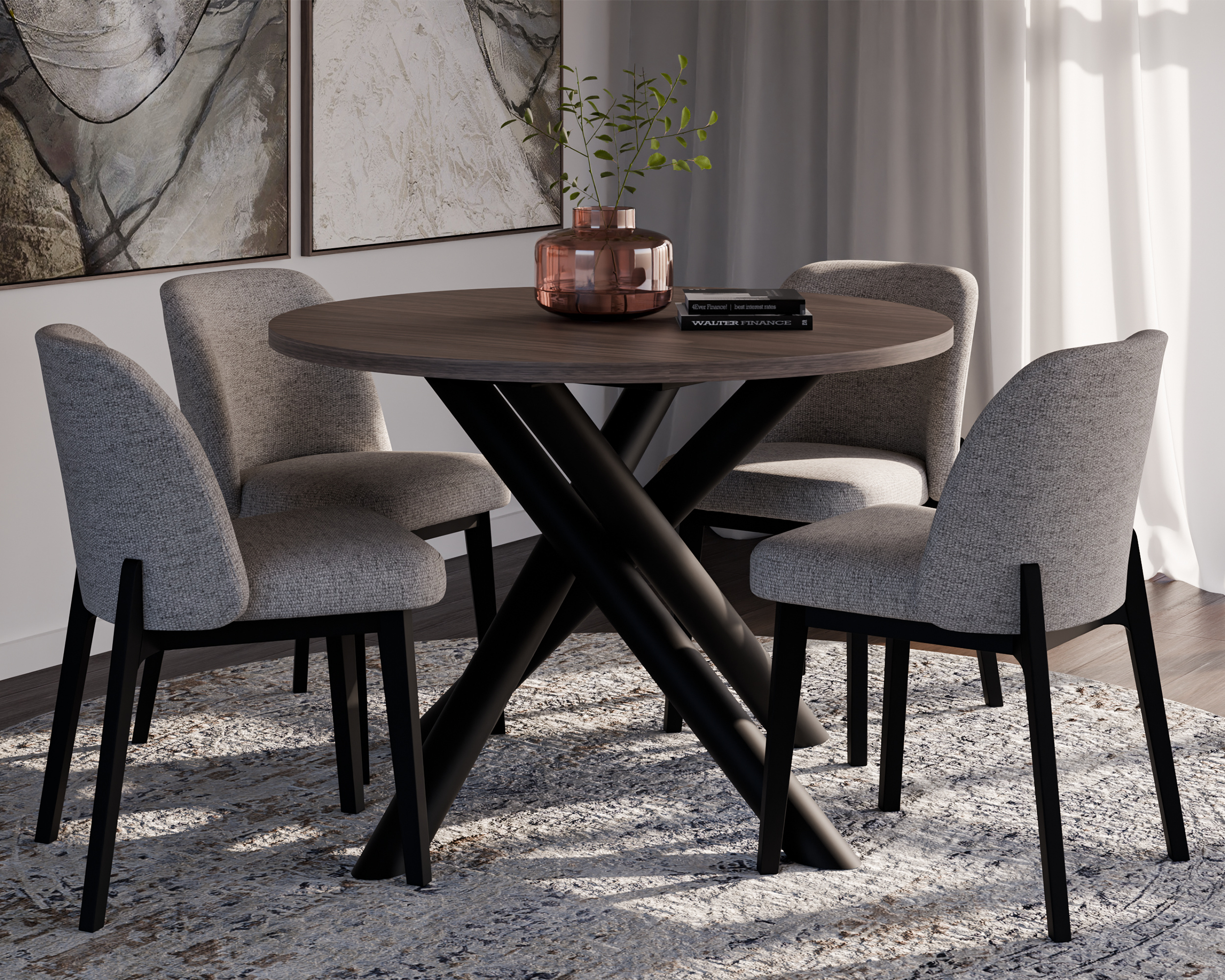 Kruhová či oválná deska o tloušťce 28 mm je vyrobena z vysoce odolného lamina, které je chráněno ABS hranou. Ta chrání stůl před mechanickým poškozením a vlhkostí. Vyberte si ze čtyř stylových dekorů, které definují atmosféru místnosti: