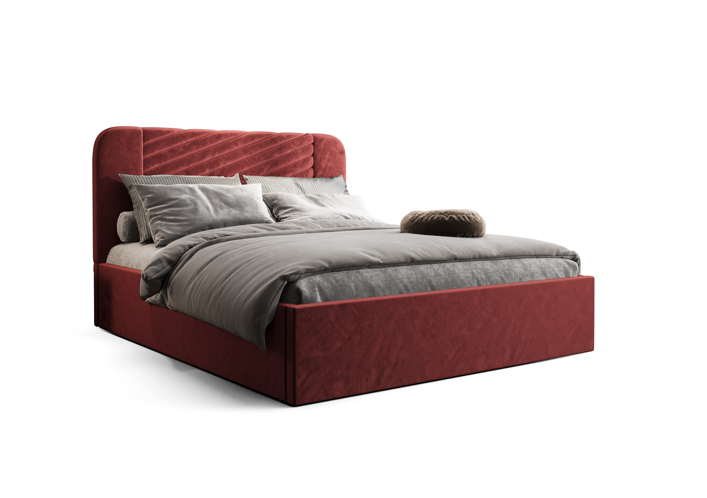 • Designové čelo: Dominantou postele je vysoké, elegantně prošívané a lehce zaoblené čelo. Tento detail v sobě spojuje klasickou eleganci s moderními prvky a dodává celému interiéru unikátní charakter.