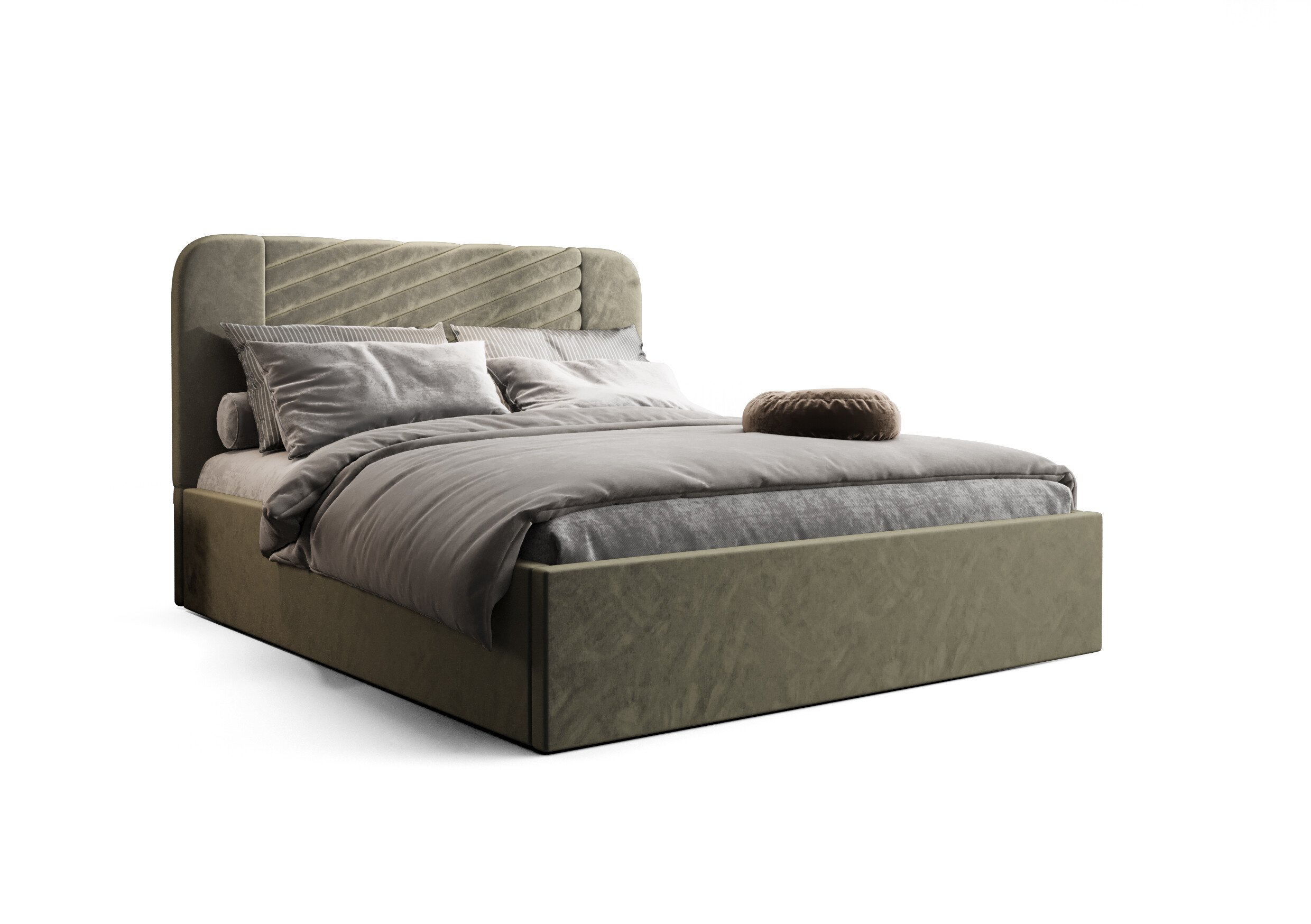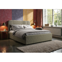• Designové čelo: Dominantou postele je vysoké, elegantně prošívané a lehce zaoblené čelo. Tento detail v sobě spojuje klasickou eleganci s moderními prvky a dodává celému interiéru unikátní charakter.