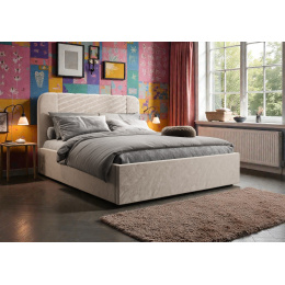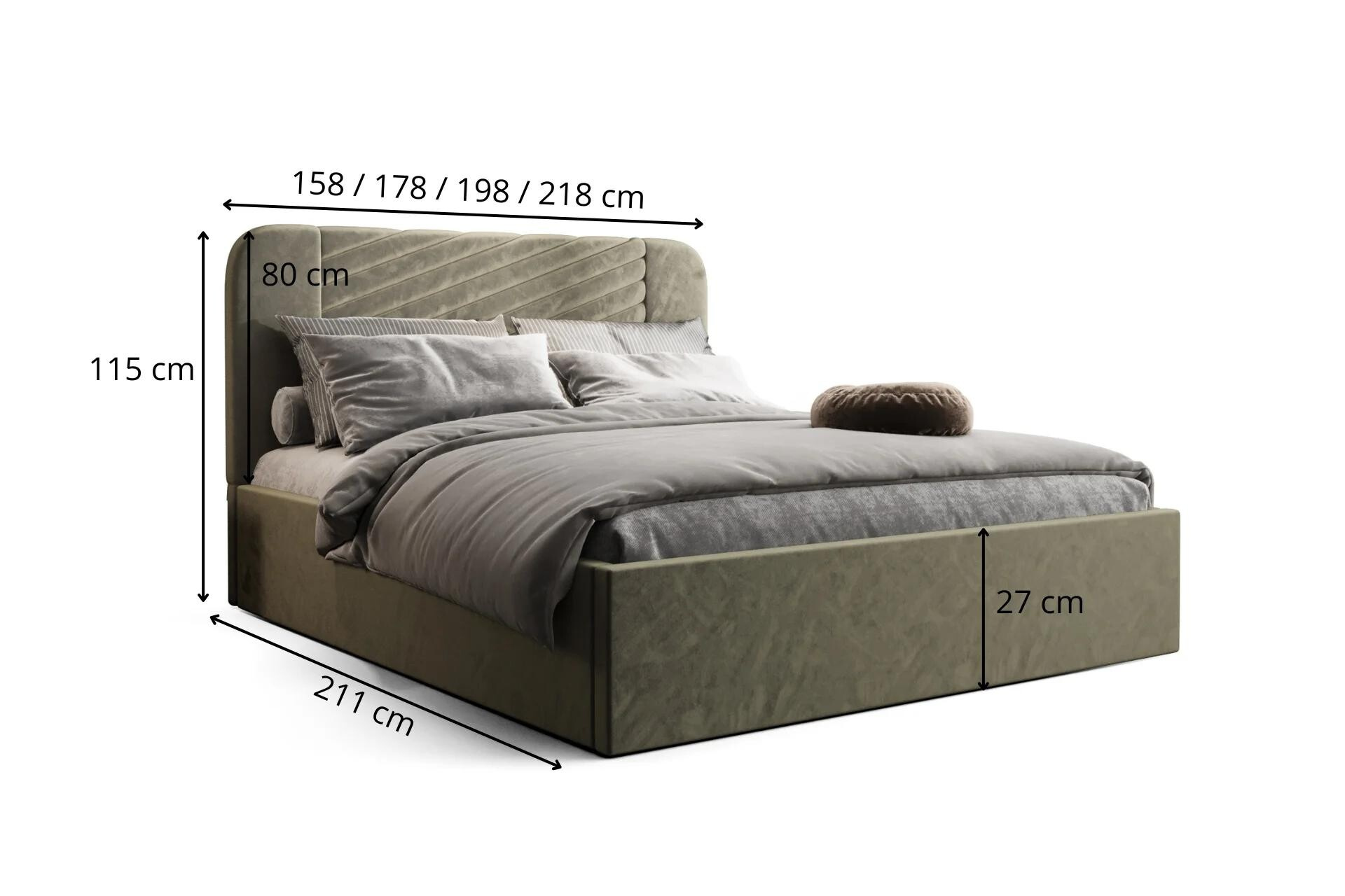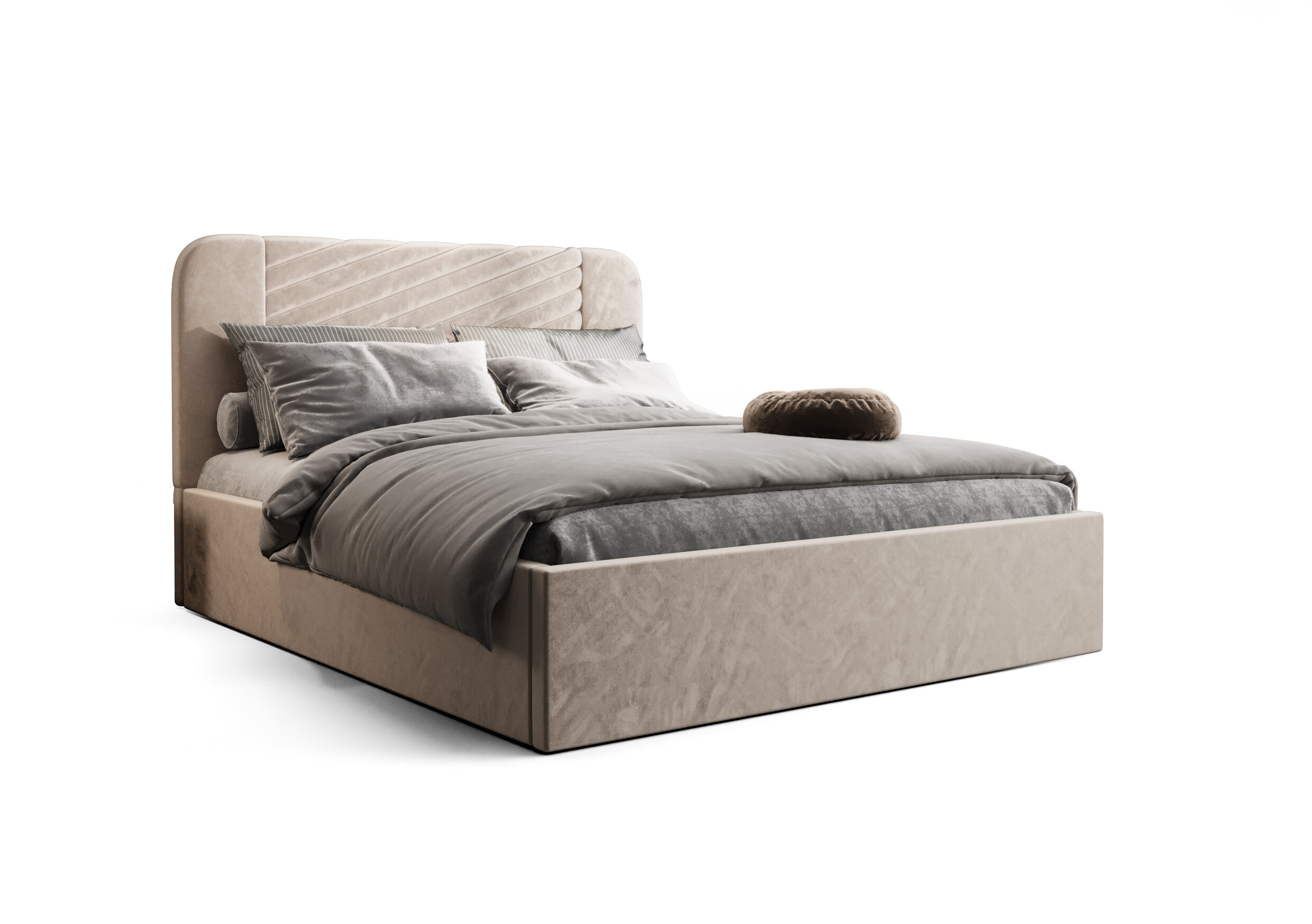 • Designové čelo: Dominantou postele je vysoké, elegantně prošívané a lehce zaoblené čelo. Tento detail v sobě spojuje klasickou eleganci s moderními prvky a dodává celému interiéru unikátní charakter.
