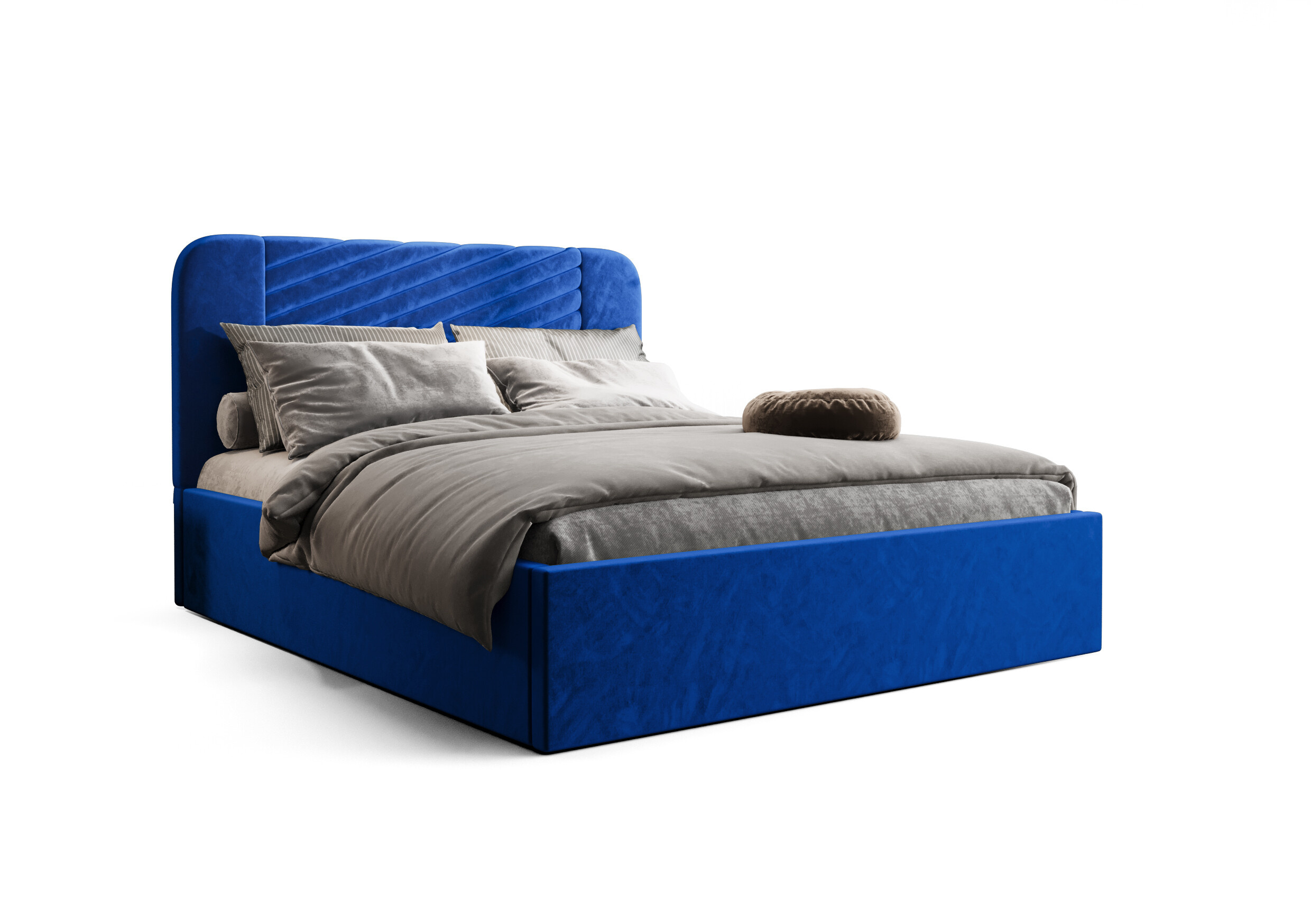 • Designové čelo: Dominantou postele je vysoké, elegantně prošívané a lehce zaoblené čelo. Tento detail v sobě spojuje klasickou eleganci s moderními prvky a dodává celému interiéru unikátní charakter.