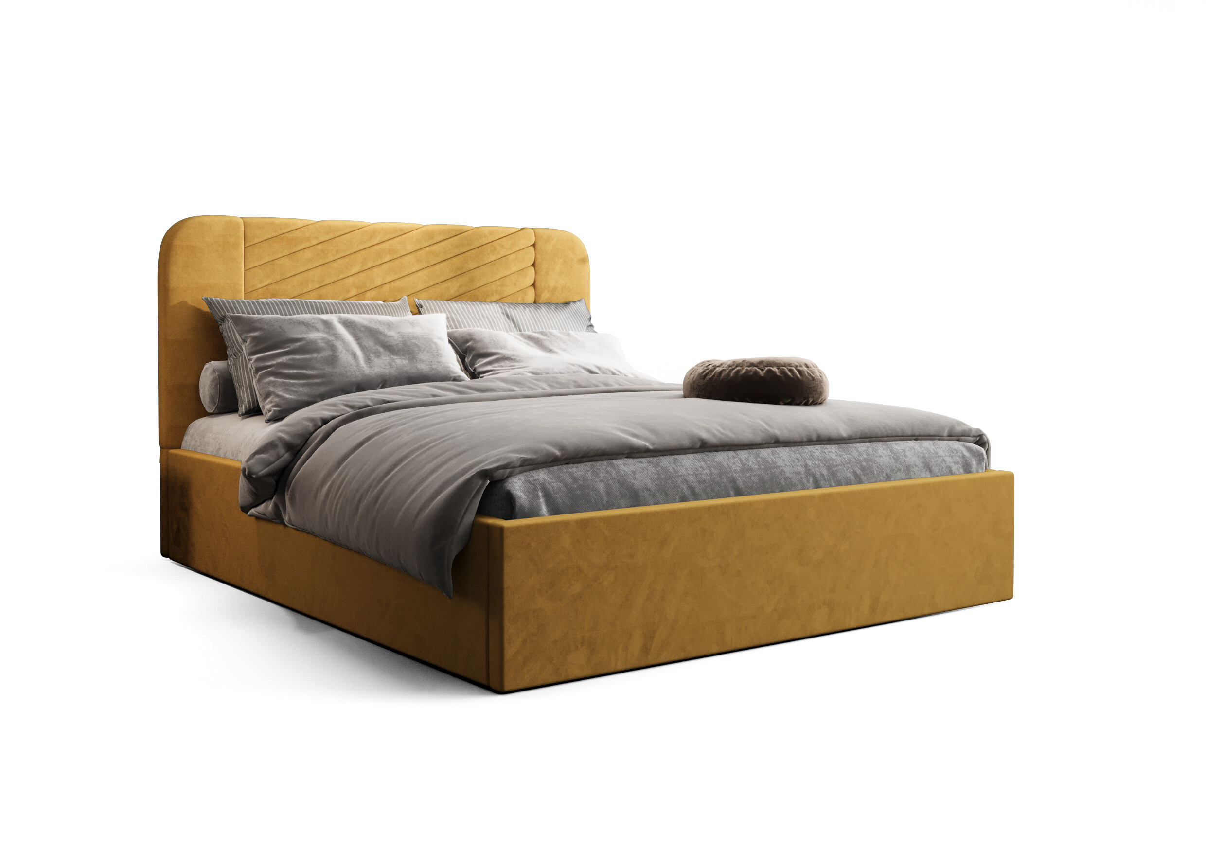 • Designové čelo: Dominantou postele je vysoké, elegantně prošívané a lehce zaoblené čelo. Tento detail v sobě spojuje klasickou eleganci s moderními prvky a dodává celému interiéru unikátní charakter.