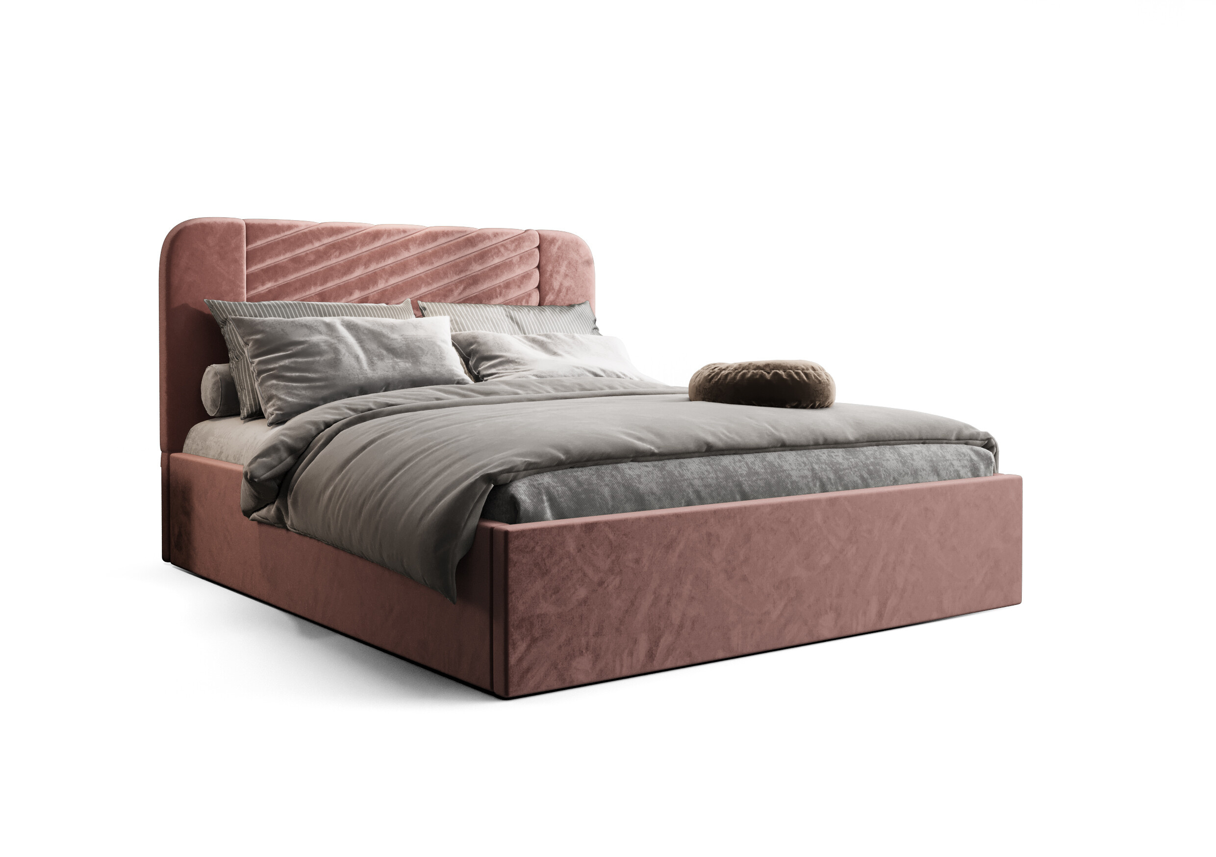 - Designové čelo: Dominantou postele je vysoké, elegantně prošívané a lehce zaoblené čelo. Tento detail v sobě spojuje klasickou eleganci s moderními prvky a dodává celému interiéru unikátní charakter.