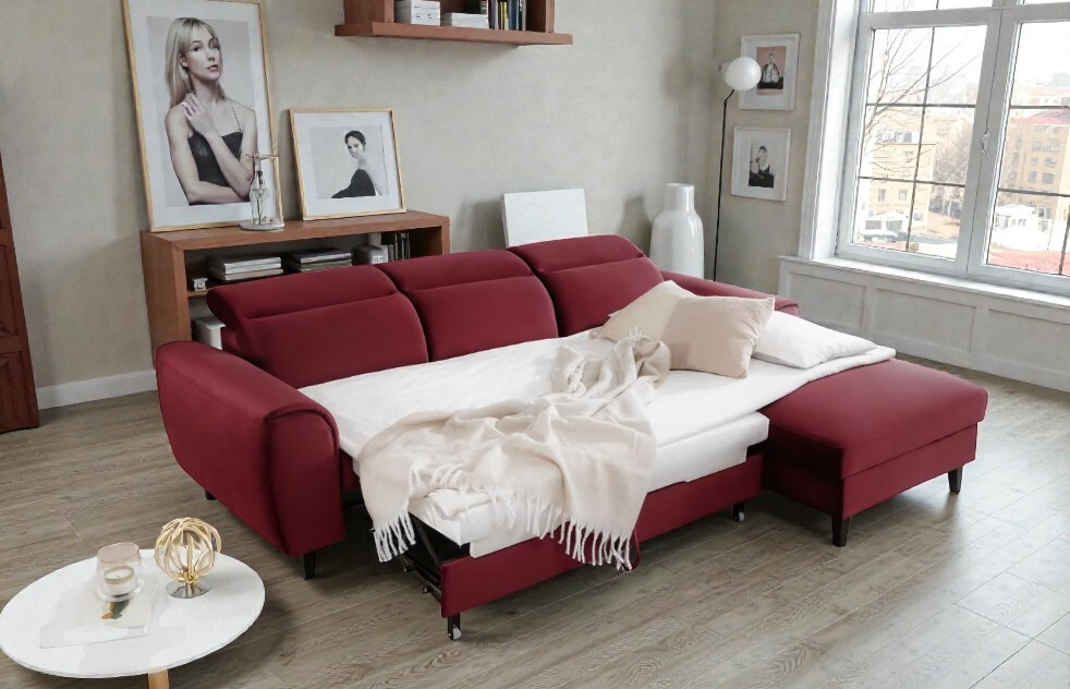 • Praktický rozklad: Mechanismus Delfin promění sedačku v prostorné lůžko o délce 240 cm, zatímco integrovaný kontejner v otomanu bezpečně schová veškeré lůžkoviny.