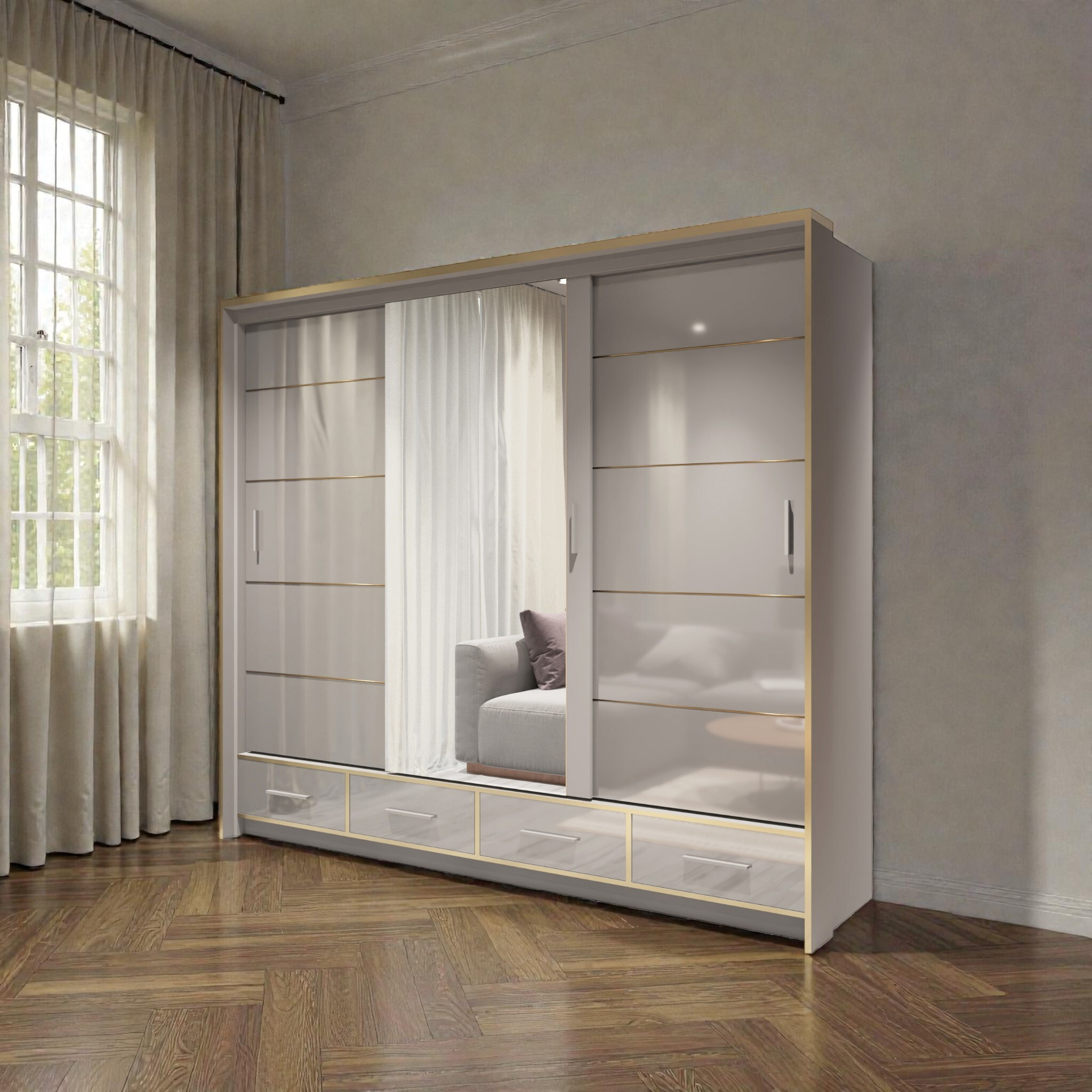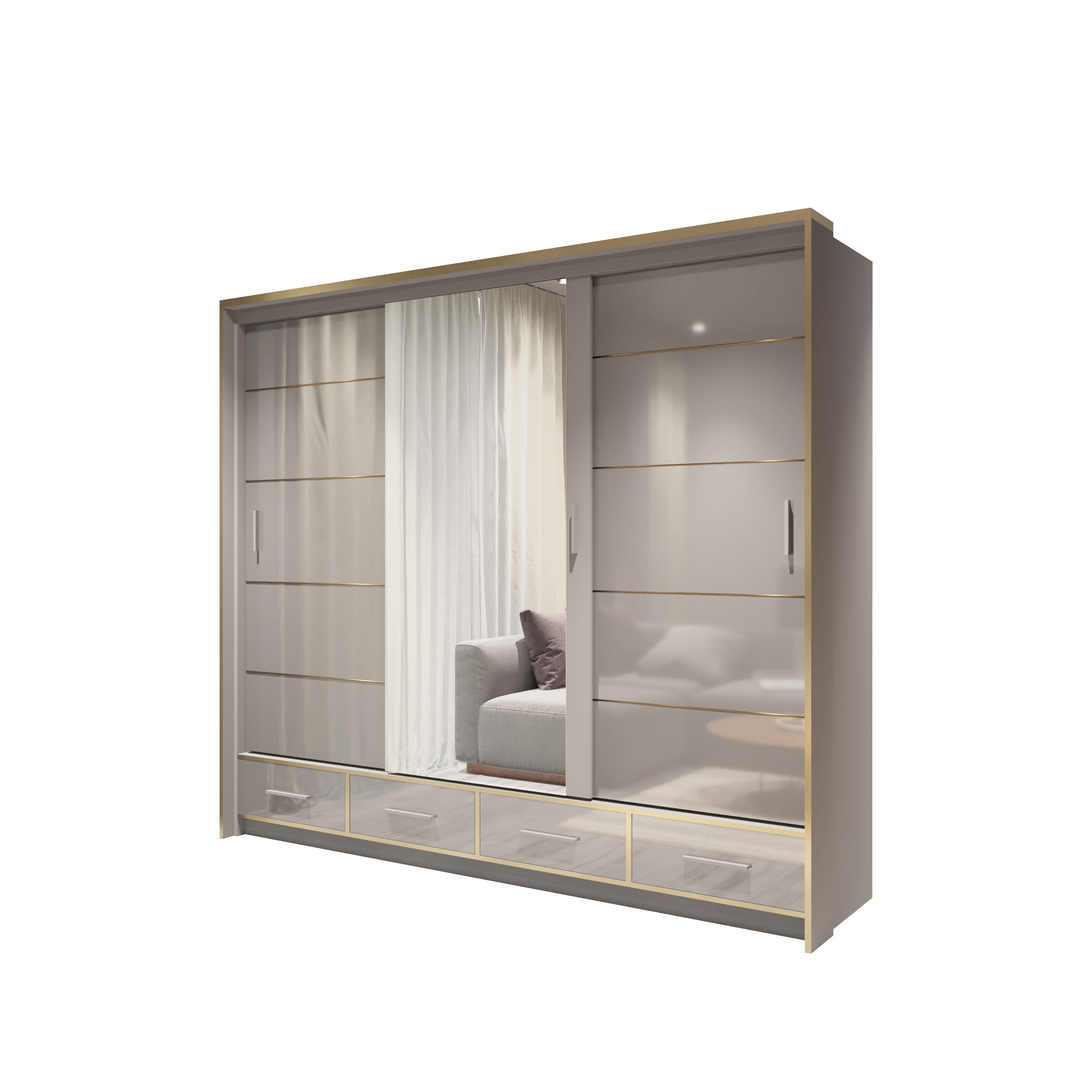 Kvalitní šatní skřín Siena 253cm, šedý lesk + LED PODSVÍCENÍ