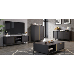Hledáte nábytek, který definuje prostor a dodá mu punc exkluzivity? Kolekce Tereno je vytříbenou odpovědí i pro ty nejnáročnější zákazníky. Tato sestava představuje fascinující spojení hlubokého antracitu a zářivých zlatých detailů, které společně vytvářejí atmosféru moderního paláce přímo u vás doma.