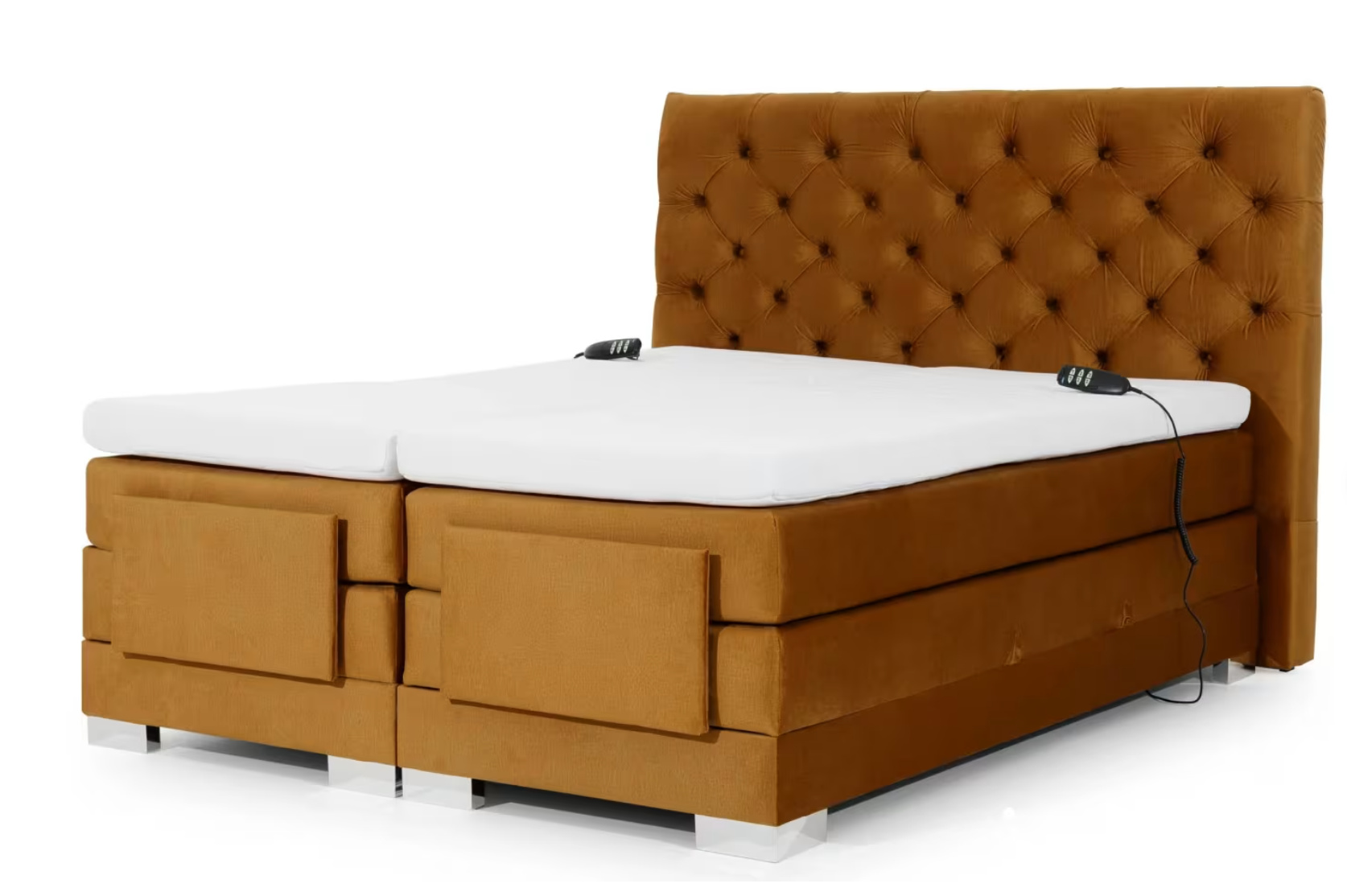 - Elektrické polohování: Součástí postele jsou dva dálkové ovladače umístěné po obou stranách. Každý uživatel si tak může nezávisle nastavit ideální sklon matrace pro maximální regeneraci.
