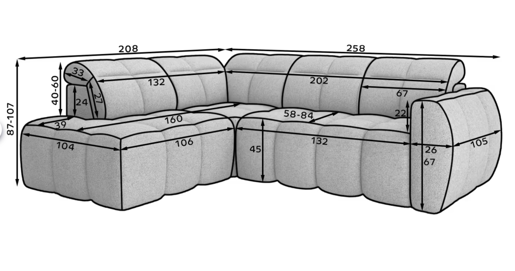 | Celková hloubka | 208 cm |