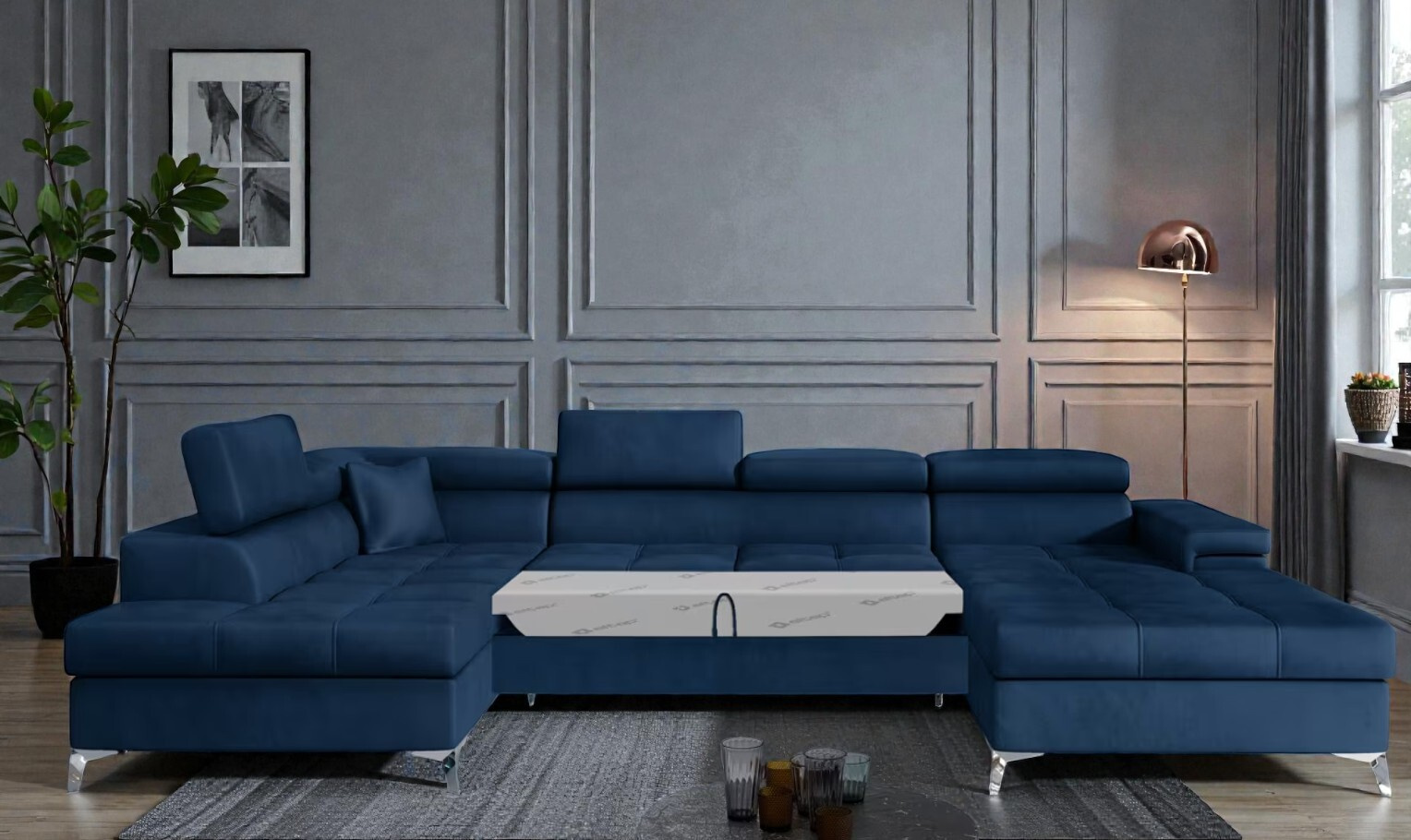 Sedací souprava Bamako je víc než jen nábytek – je to designové prohlášení, které do vašeho obývacího pokoje vnese atmosféru exkluzivity a svěžesti. S působivou šířkou 345 cm a tvarem do U nabízí velkorysý prostor pro celou rodinu, zatímco její sofistikované linie uspokojí i ty nejnáročnější milovníky interiérového designu.