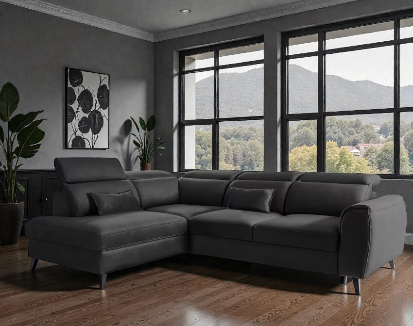 Luxusní rohová sedačka s rozkladem Bari, tmavě šedá