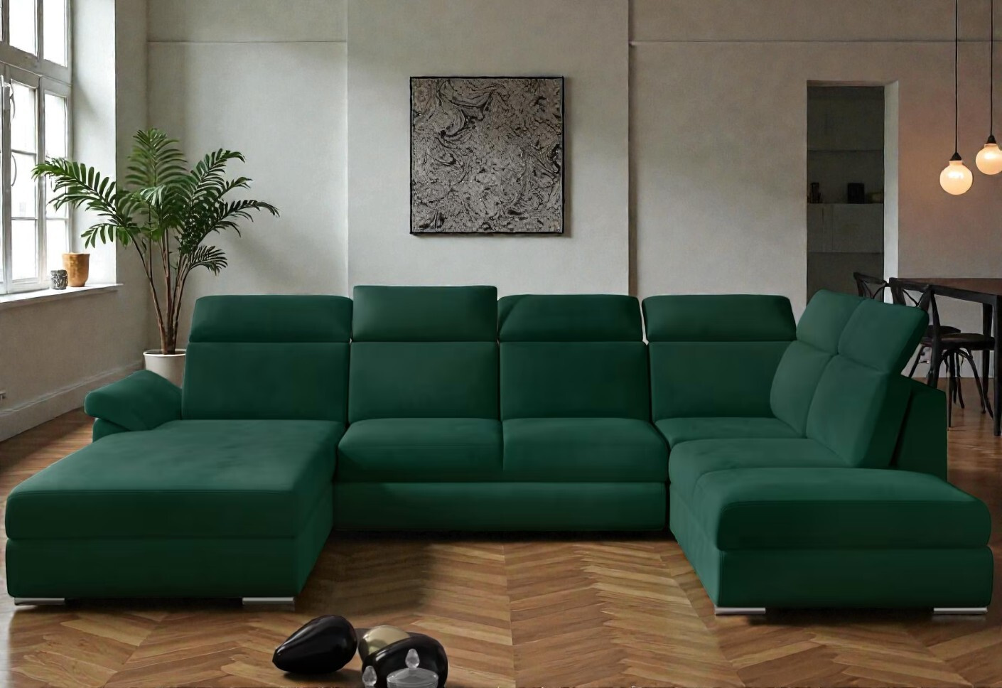 Model Evanell je ztělesněním velkorysosti a stylu. Tato impozantní sedací souprava ve tvaru U o šířce 336 cm vás na první pohled zaujme svou klasickou siluetou, která je citlivě doplněna moderními detaily. Je navržena pro ty, kteří od svého nábytku očekávají nejen estetický zážitek, ale i maximální pohodlí pro celou rodinu.