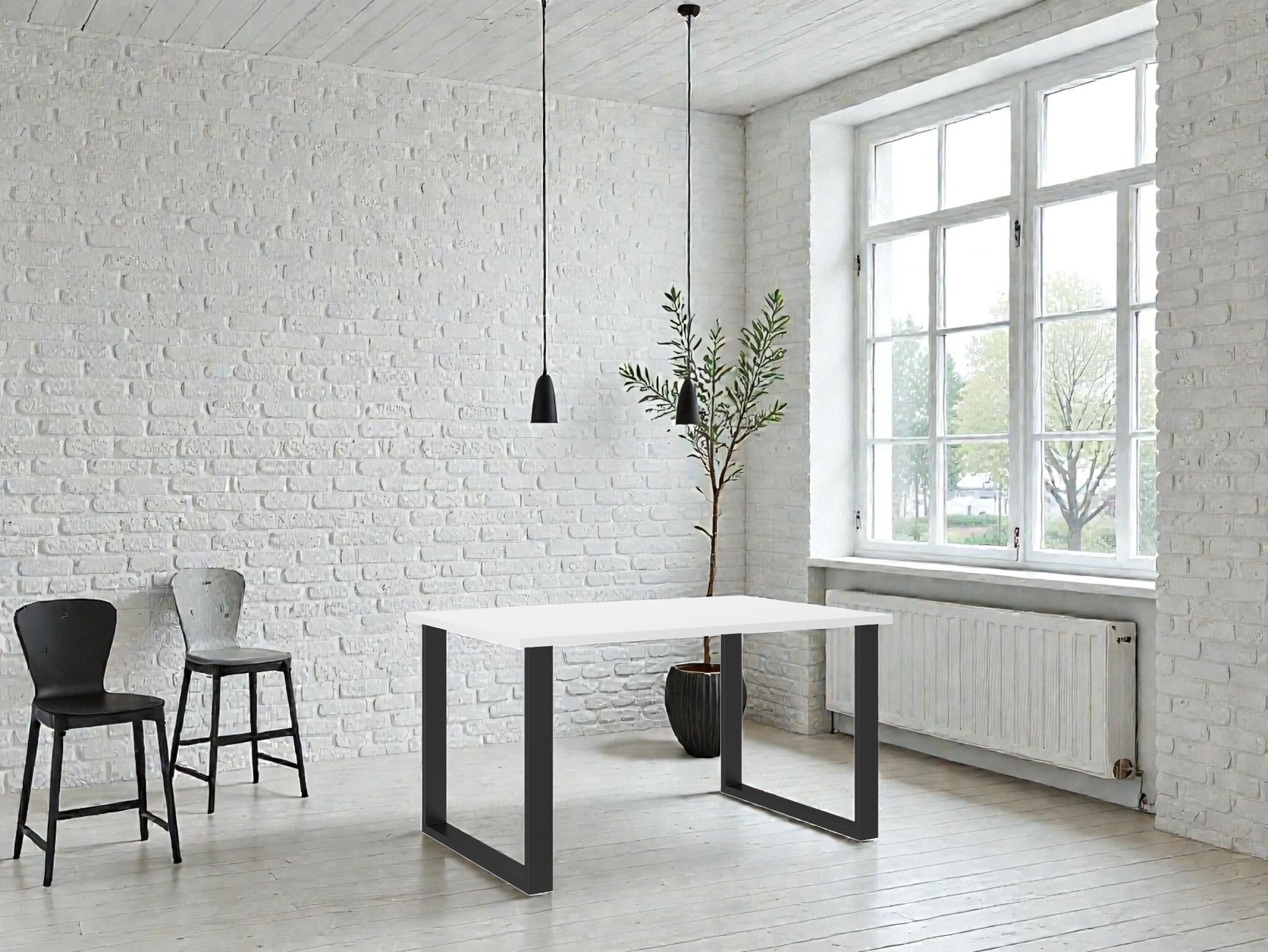 Hledáte stůl, který je kompaktní, ale přesto působí masivně a stylově? Tento model spojuje minimalistickou bílou desku s nekompromisní stabilitou ocelové podnože. Díky svým rozměrům je perfektním řešením do moderních kuchyní i jídelních koutů v bytech.