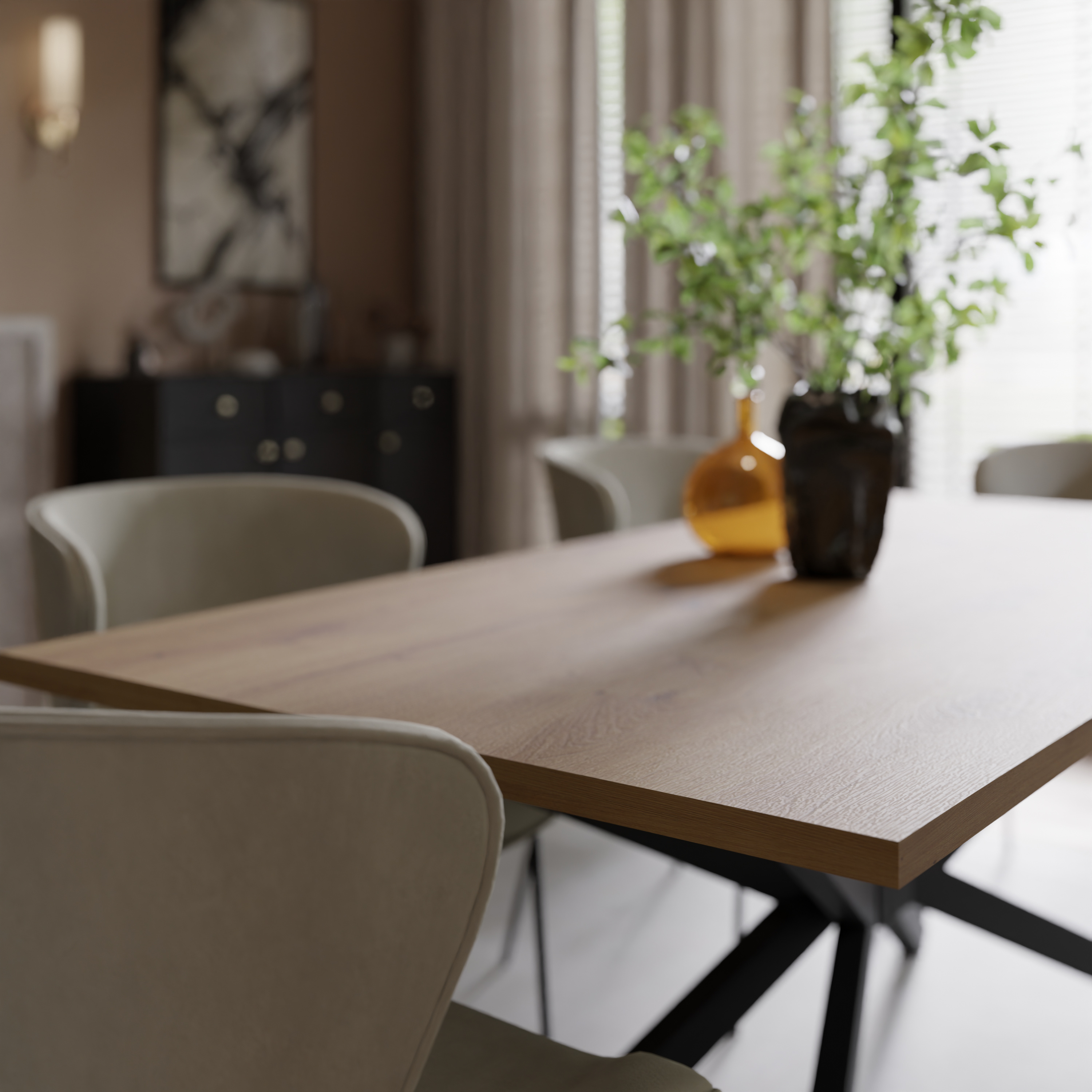 Hledáte dominantní prvek, který spojuje syrovost kovu s hřejivým dekorem dřeva? Jídelní stůl Aneta v rozměru 185 x 90 cm je navržen pro ty, kteří ocení poctivé řemeslné zpracování a nadčasový loftový design.