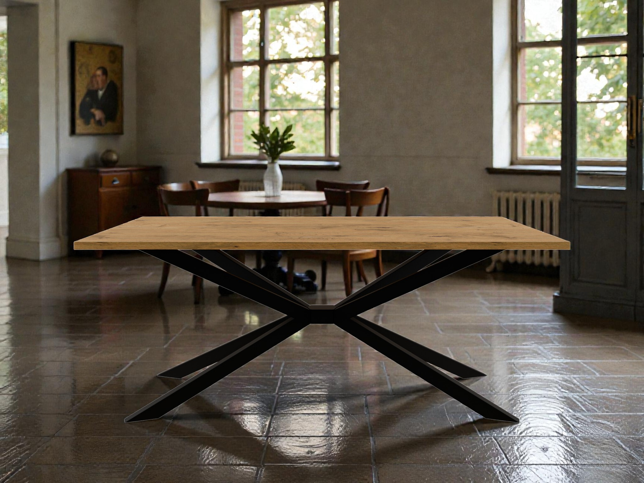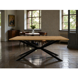 Hledáte dominantní prvek, který spojuje syrovost kovu s hřejivým dekorem dřeva? Jídelní stůl Aneta v rozměru 185 x 90 cm je navržen pro ty, kteří ocení poctivé řemeslné zpracování a nadčasový loftový design.