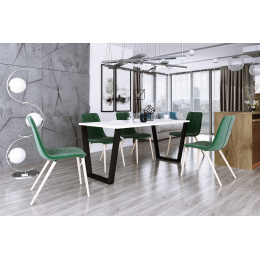 Hledáte stůl, který je kompaktní, ale přesto působí masivně a stylově? Tento model spojuje minimalistickou bílou desku s nekompromisní stabilitou ocelové podnože. Díky svým rozměrům je perfektním řešením do moderních kuchyní i jídelních koutů v bytech.