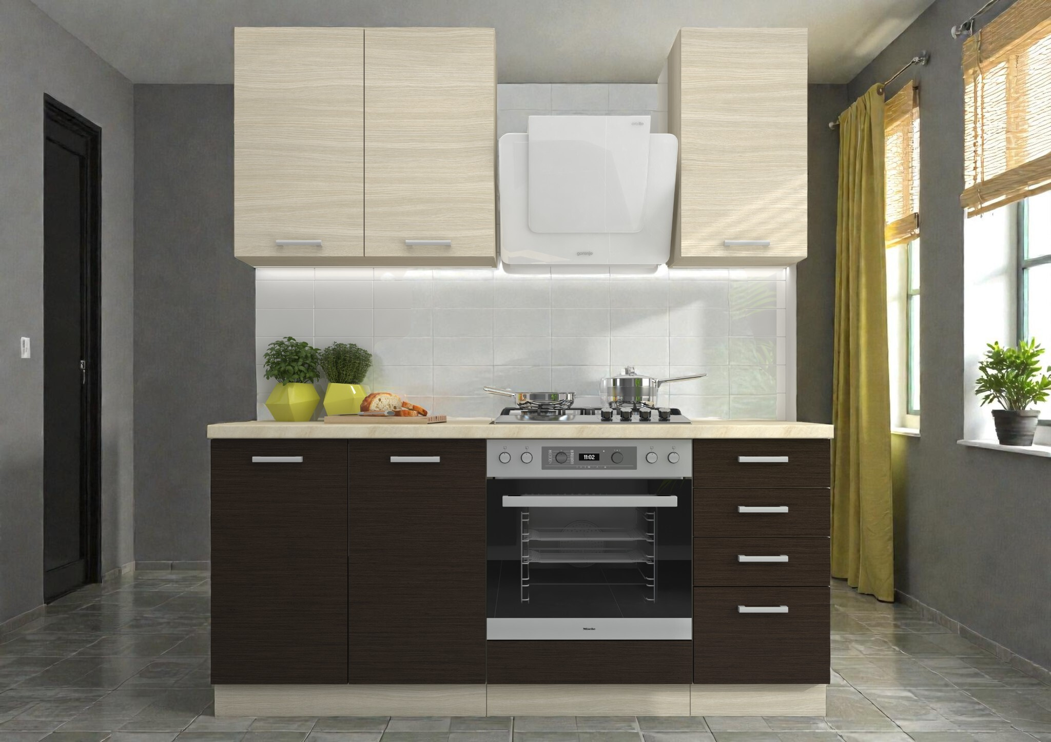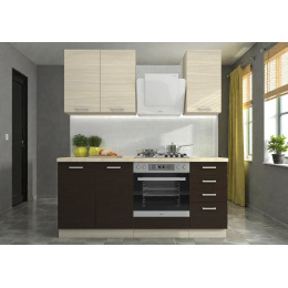 Tato kuchyňská linka je ideální volbou pro ty, kteří hledají útulný design s nádechem dřeva a hledají efektivní, funkční řešení za příznivou cenu. Kombinace dvou dřevitých dekorů dodává sestavě zajímavou dynamiku, která oživí každou domácnost.