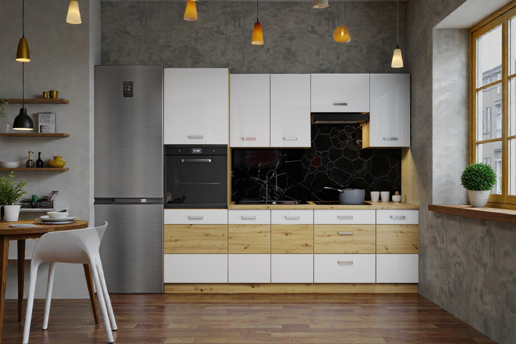 Hledáte kuchyni, která působí útulně, ale zároveň moderně a čistě? Modelová řada Delta kombinuje hřejivý přírodní dekor dubu artisan s vysoce lesklými čelními plochami. Tato kombinace dodá vaší domácnosti nádech luxusu a vizuálně zvětší prostor díky odrazům světla na lesklých frontách.