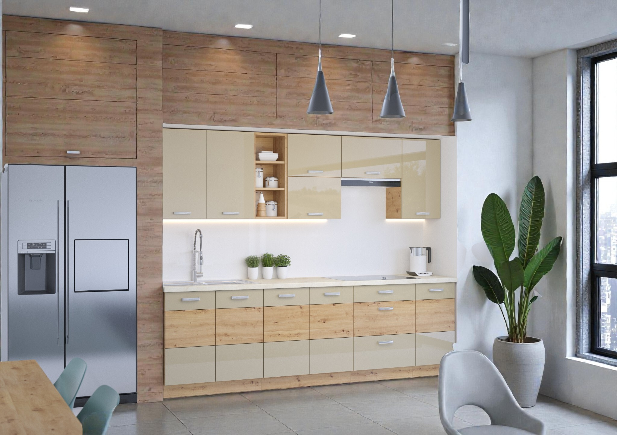 Hledáte kuchyni, která působí útulně, ale zároveň moderně a čistě? Modelová řada Delta kombinuje hřejivý přírodní dekor dubu artisan s vysoce lesklými čelními plochami. Tato kombinace dodá vaší domácnosti nádech luxusu a vizuálně zvětší prostor díky odrazům světla na lesklých frontách.